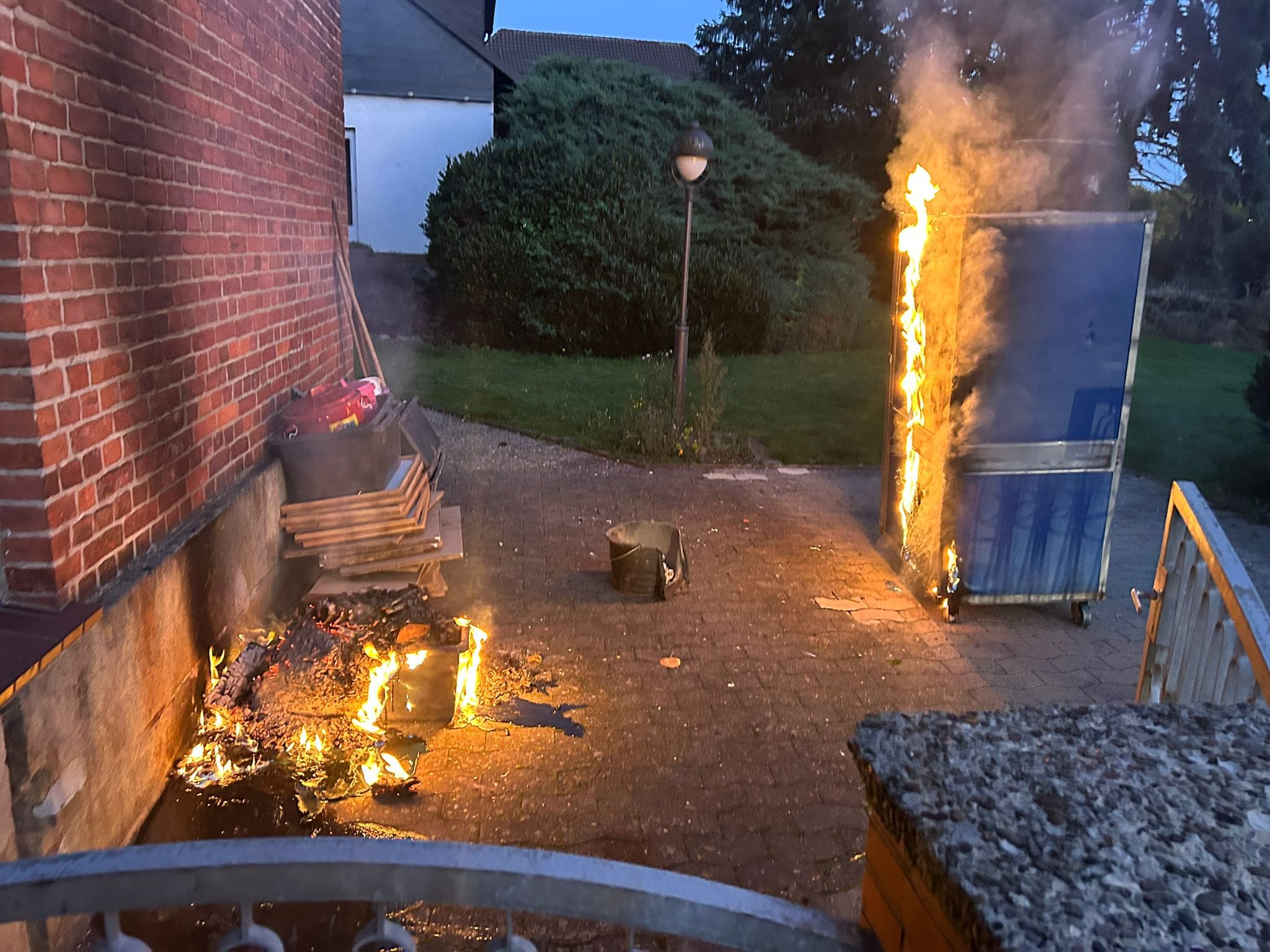 Um 18:48 Uhr folgte der nächste Einsatz in Scharfoldendorf, Tiefe Straße. Dort standen ein Müllcontainer sowie Holz und Unrat neben einer Scheune in Flammen. Die Feuerwehr konnte das Feuer zügig löschen und ein Übergreifen auf das Gebäude verhindern.