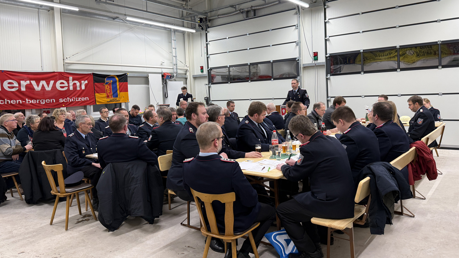 Die Jahreshauptversammlung stand gleich in mehrfacher Hinsicht unter besonderen Vorzeichen. Erstmals fand die Veranstaltung in der neuen Fahrzeugbox statt. Zudem war es die erste Jahreshauptversammlung für den neuen Kreisbrandmeister Michael Eisenbeis.
