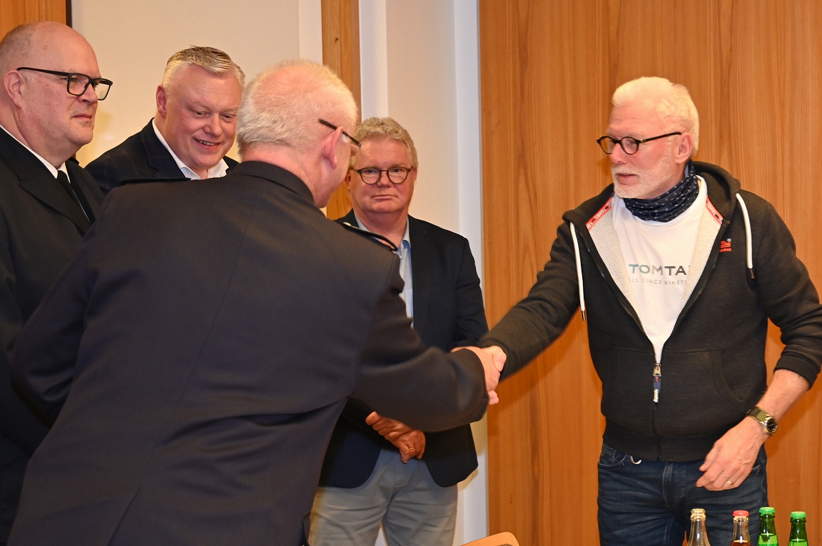 Im Anschluss folgten zahlreiche Ehrungen. Das Feuerwehrehrenzeichen des Landes Nordrhein-Westfalen in Gold verlieh Bürgermeister Daniel Hartmann an Hauptfeuerwehrmann Rolf Hillebrecht, Hauptbrandmeister Andreas Klie, Hauptfeuerwehrmann Jens Lippelt sowie Unterbrandmeister Oliver Heine. Das Ehrenzeichen in Silber für 25 Jahre aktiven Feuerwehrdienst erhielt Unterbrandmeister Sebastian Heine.
