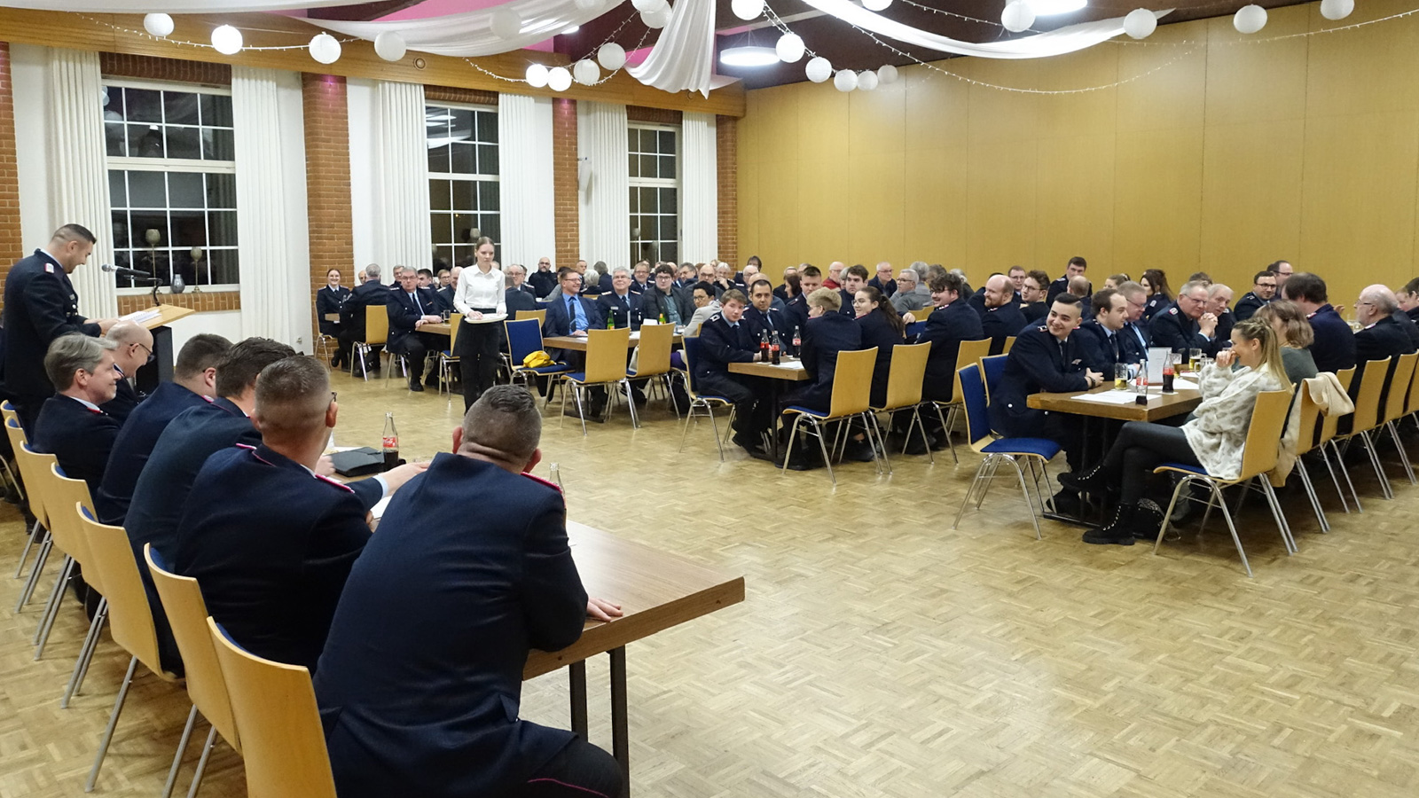 Delligsen (red). Zur Jahreshauptversammlung der Freiwilligen Feuerwehr Delligsen für das Berichtsjahr 2025 begrüßte Ortsbrandmeister Dennis Ohlscher zahlreiche Kameradinnen und Kameraden sowie Gäste aus Politik, Verwaltung, Hilfsorganisationen und Vereinen im Delligser Festsaal.