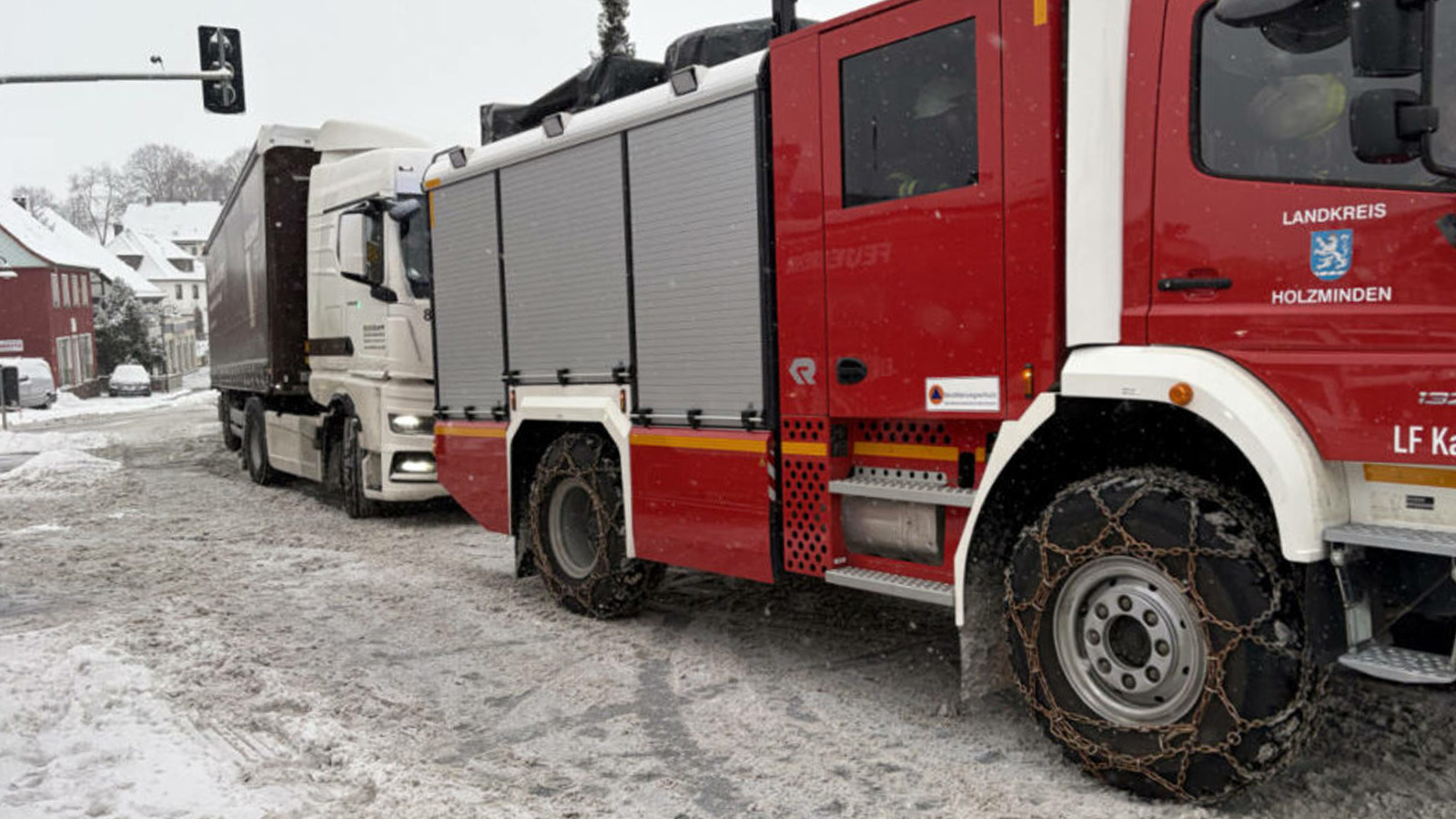 Die Einsatzkräfte der Ortsfeuerwehr Eschershausen sicherten zunächst die betroffenen Straßenabschnitte und begannen anschließend mit dem Abschleppen der festgefahrenen Lastkraftwagen. Mehrere Lkw wurden dabei kontrolliert, die Steigung hinaufgezogen, um die blockierten Verkehrsachsen wieder freizumachen.