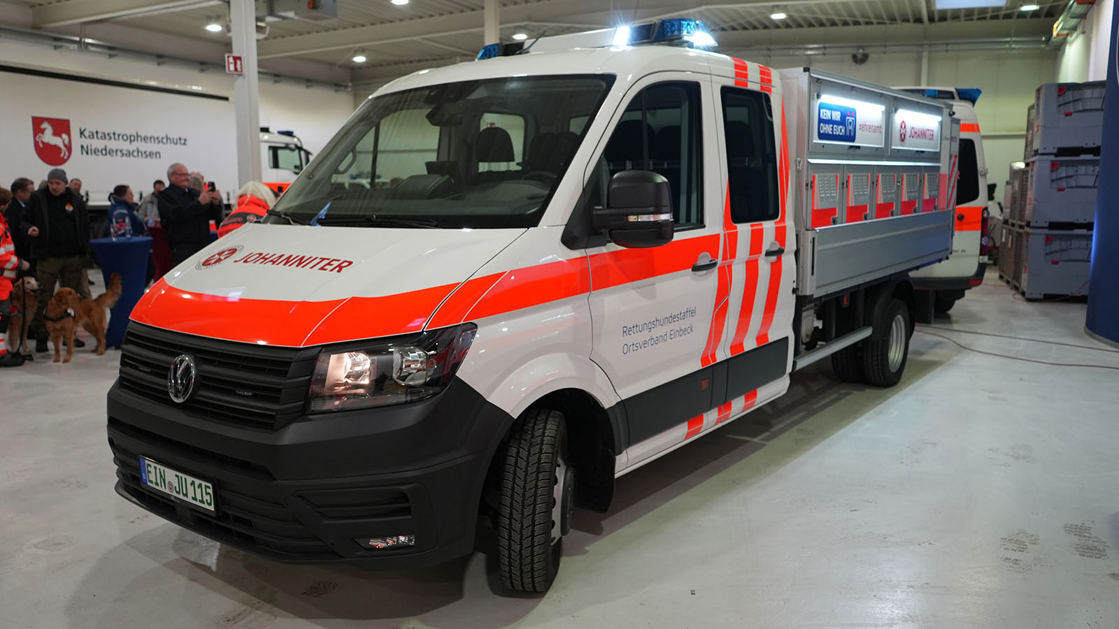 Einbeck/Holzminden (awin). Am Mittwochnachmittag, 28. Januar 2026, ist in der Dienststelle des Johanniter-Ortsverbands Einbeck das neue Einsatzfahrzeug der Rettungshundestaffel feierlich übergeben worden. Rund 60 geladene Gäste nahmen an der Veranstaltung teil und begleiteten die Schlüsselübergabe des speziell ausgestatteten VW Crafter.