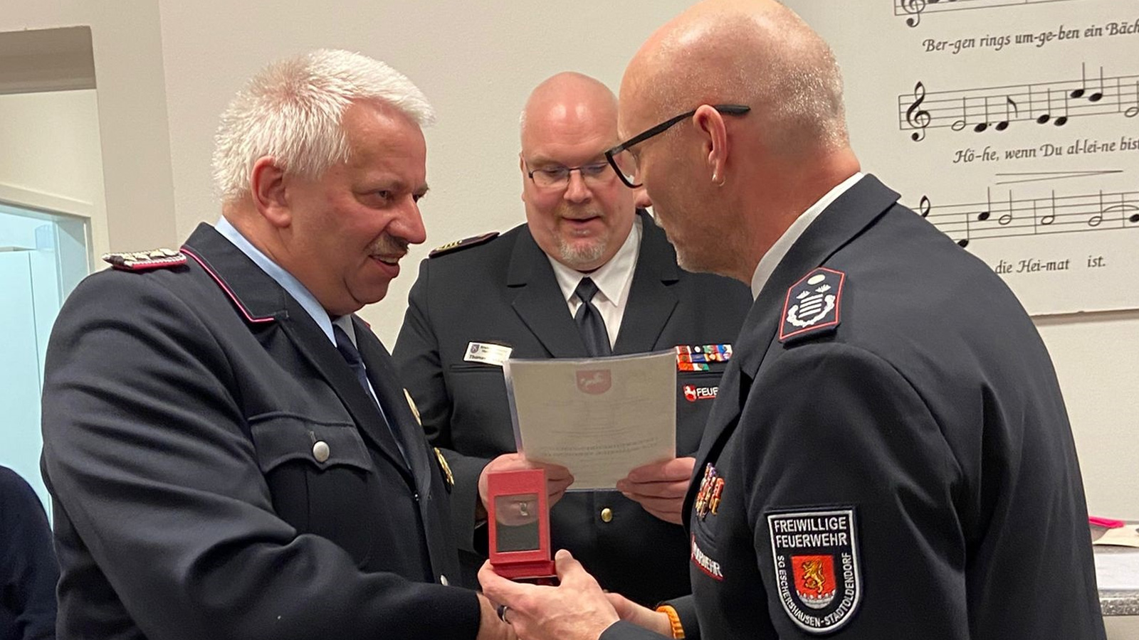 Für 40 Jahre aktiven Dienst wurde Thomas Utermöhle geehrt. Franziska Müller wurde zur Oberfeuerwehrfrau, Sascha Tessmer zum Oberfeuerwehrmann und Harald Müller zum Hauptfeuerwehrmann befördert. Die Beförderung von Dominik Tessmer zum Hauptfeuerwehrmann wird nachgeholt. Philip Müller und Jan Eilers wurden zu Brandmeistern befördert.