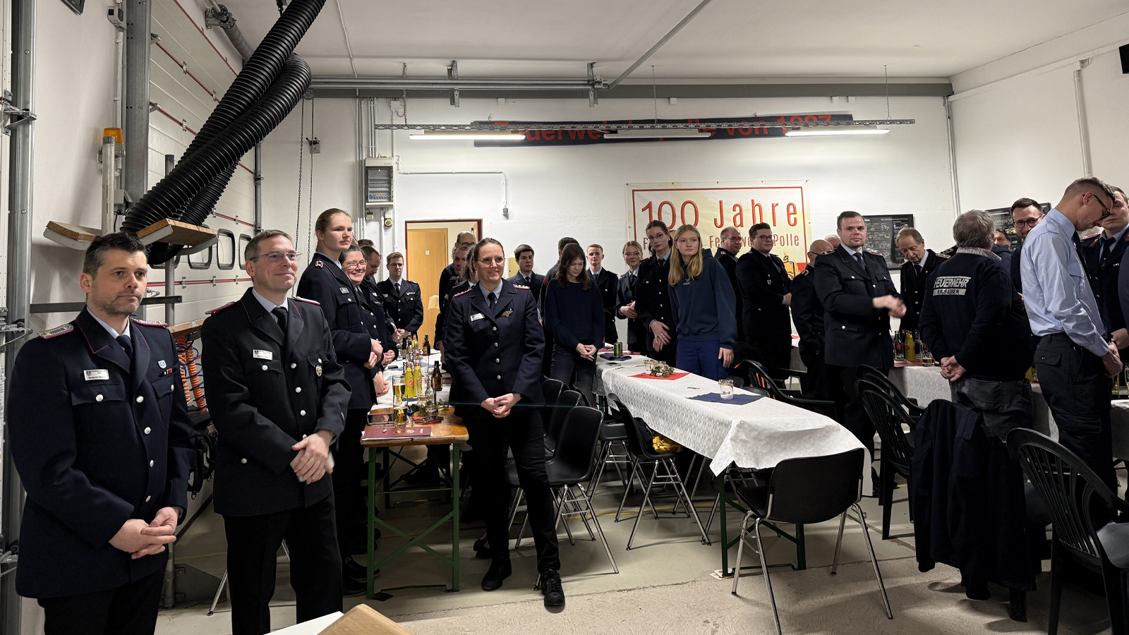 Polle (red). Zur Jahreshauptversammlung im Feuerwehrhaus in Polle begrüßte Ortsbrandmeister Benjamin Mewes am 14. Februar 2026 zahlreiche Kameradinnen und Kameraden. Neben Vertreterinnen und Vertretern der Politik waren auch Repräsentantinnen und Repräsentanten der Samtgemeinde sowie der Kreis- und Gemeindefeuerwehr anwesend. Ebenso nahmen Abordnungen der Ortsfeuerwehren Heinsen, Brevörde und Rischenau sowie eine Abordnung aus Ummendorf/Eilsleben teil.