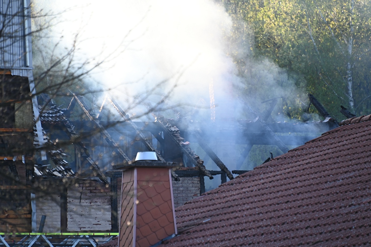 Nach bisherigen Angaben brach das Feuer im Bereich eines Anbaus aus und breitete sich rasch aus. Eine Zeugin hatte gegen 16 Uhr Rauch bemerkt und die Einsatzkräfte alarmiert. Beim Eintreffen von Feuerwehr und Polizei stand der Dachstuhl bereits in Flammen, gegen 17 Uhr war er vollständig ausgebrannt.