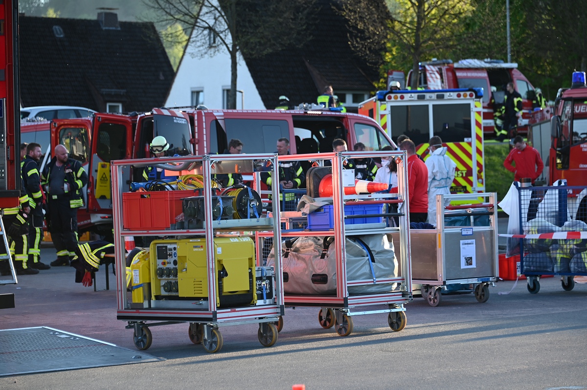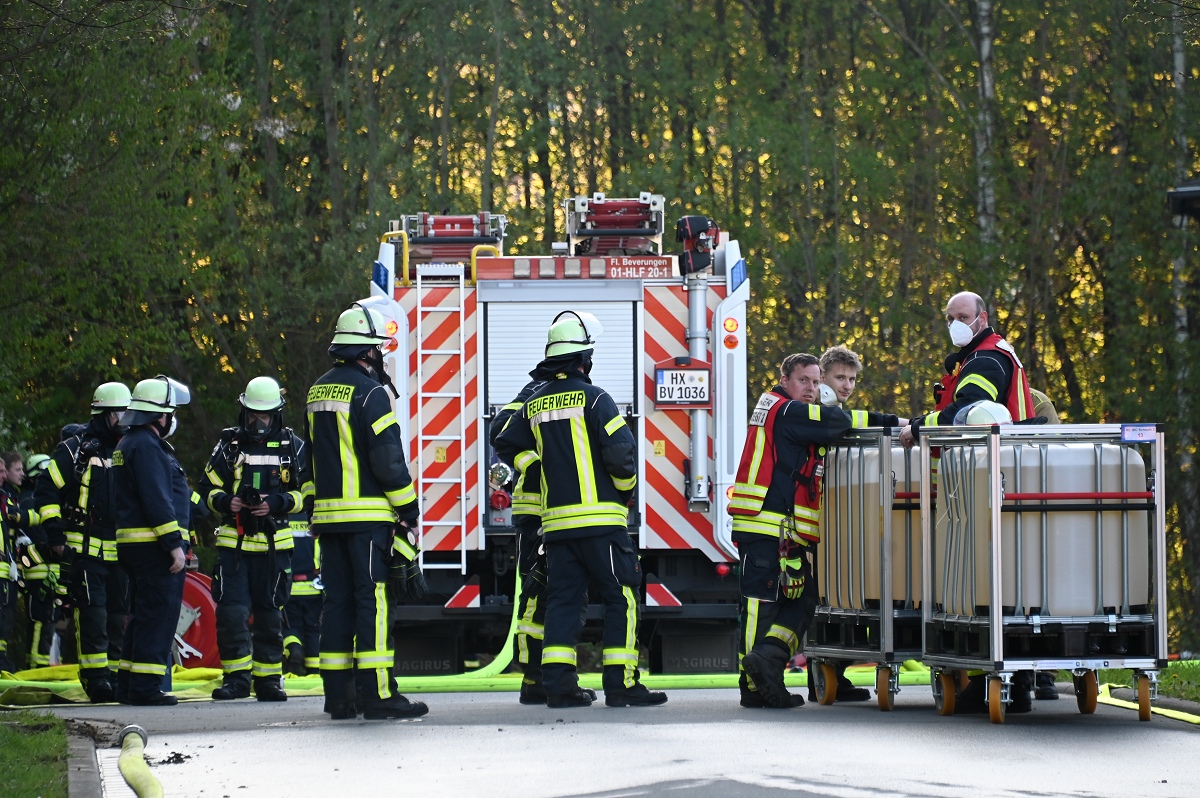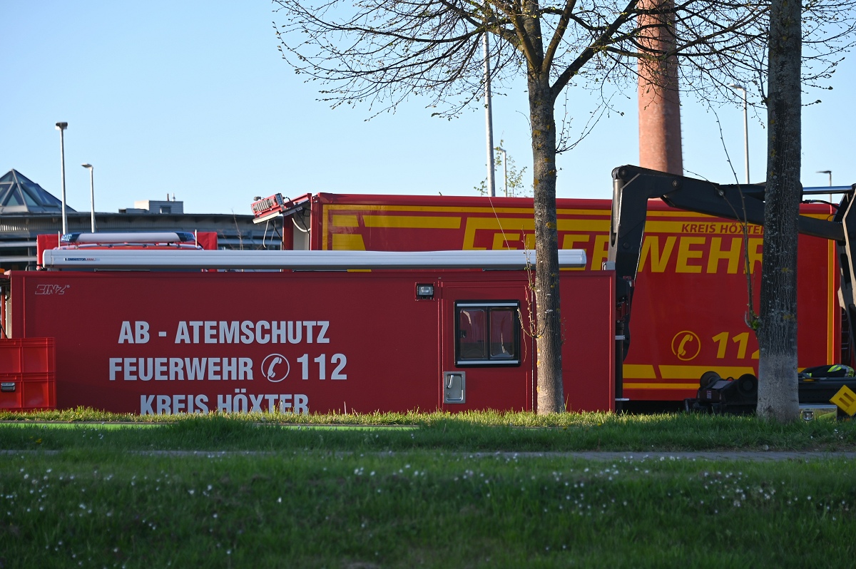 Rund 120 Einsatzkräfte waren zeitweise vor Ort. Neben umfangreichen Löschmaßnahmen kam auch eine Drohne der Kreisfeuerwehr Höxter zum Einsatz.