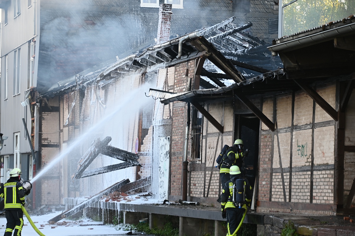 Beverungen (red). Nach dem Großbrand am Donnerstagnachmittag auf dem Gelände des Alten Bahnhofs in Beverungen liegen weitere Erkenntnisse zum Einsatzverlauf und zum Ausmaß der Schäden vor.