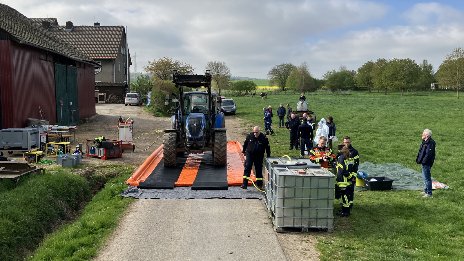 Holzminden (red). Das Kreisveterinäramt Holzminden hat gemeinsam mit dem ABC-Zug der Kreisfeuerwehr Holzminden den Ernstfall geprobt. Ziel war es, die Handlungsabläufe bei einer ausbrechenden Tierseuche zu trainieren. Die Übung fand auf einem landwirtschaftlichen Betrieb von Sven Kumlehn in Holzminden statt. Als Beobachtende nahmen weitere Vertreterinnen und Vertreter von Feuerwehr und THW teil.