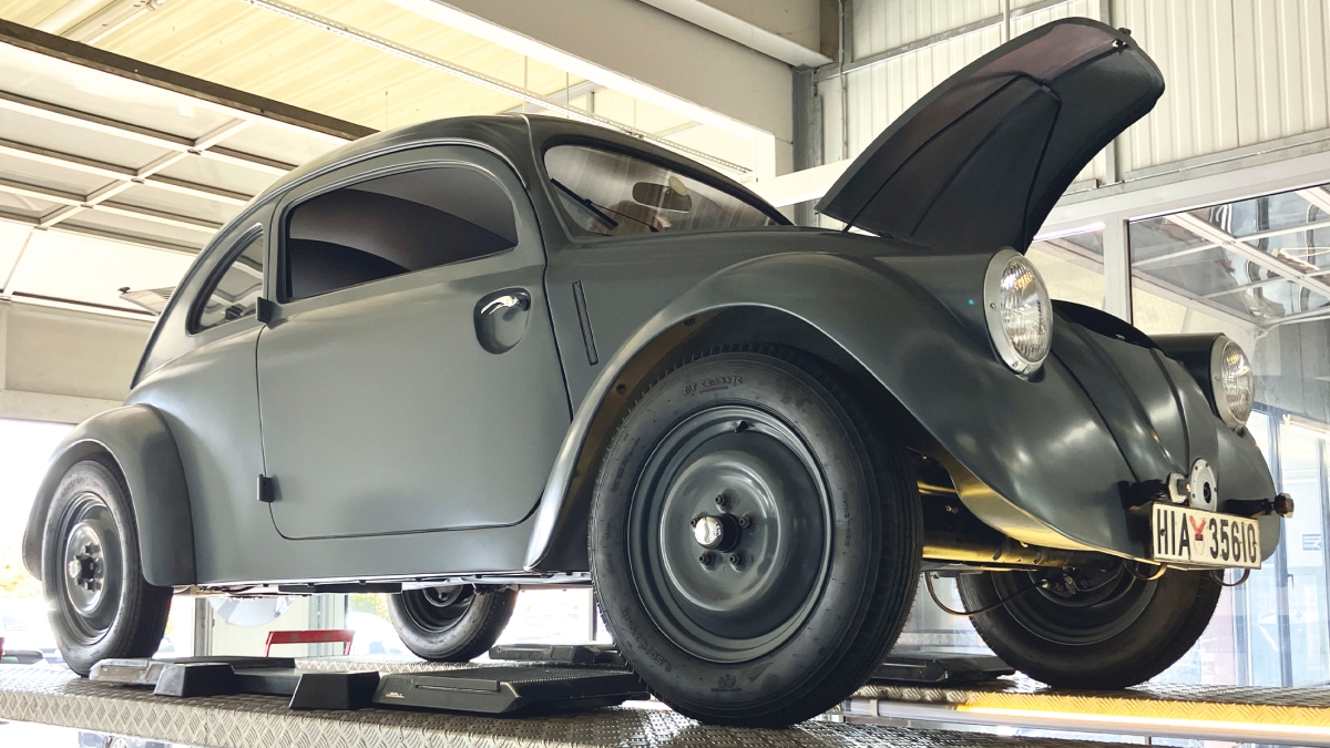Die Abnahme durch den TÜV war ein Sonderfall – in mehrfacher Hinsicht. Das Fahrzeug stammt aus dem Jahr 1937, also aus einer Zeit vor Einführung der heutigen Straßenverkehrs-Zulassungsordnung. Zudem handelt es sich um einen Prototyp, der weit vor Beginn der Serienfertigung nur 30-mal zu Erprobungszwecken gebaut wurde.