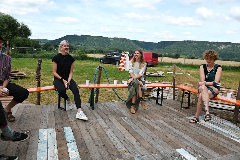 Boffzen (TKu). Noch ist das Areal unterhalb der Kennedybrücke bei Fürstenberg eine große Baustelle. Nächsten Donnerstag startet hier das Festival „Lichtalben“. Dann wird das Weserufer unterhalb der stillgelegten Eisenbahnbrücke zum dritten Mal mit Musik, Kunst und Kultur gefüllt. Menschen aus ganz Deutschland besuchen das Festival sowie das vorgeschalteten Kunst-Workshops ab Montag. Das Festival „Lichtalben“ findet vom 6. bis zum 8. August statt mit zahlreichen Bands, Discjockeys und viel elektronischer sowie handgemachter Musik auf zwei Bühnen. Was da vom Orga-Team des Vereins Lichtalben e.V. auf die Beine gestellt worden ist, das ist schon sehr beeindruckend! Mit handwerklichem Geschick stehen schon jetzt viele Holzbauten, die als Unterkunft, Ausgabestellen, Spiel- und Verweilgeräte oder einfach nur als schöne Kulisse in malerischer Natur erschaffen worden sind. Dabei wurde viel Altholz verbaut, was sonst nur auf dem Schrott gelandet wäre, sagt Daniel Schöttler vom Verein Lichtalben e.V.. Viel Eigenleistung, aber auch zahlreiche großzügige Spenden stecken in diesem Großprojekt. Das Festival-Gelände funktioniert wie ein eigenes kleines Dorf mit eigener Infrastruktur, wo es auch ein Kiosk und eine Corona-Teststation gibt. Mindestens zweimal müssen sich die Besuchenden testen lassen. Das Team um den Vereinsvorsitzenden Johannes Schmitz und die zweite Vorsitzende Nina Müllender ist groß. 200 Personen gehören zum Aufbau- und Organisationsteam dazu. „Jeder bringt sich ein, jeder, wie er kann“, weiß Vereins-Schatzmeister Daniel Schöttler zu berichten. 500 Tickets sind bereits verkauft worden. Es gibt noch 300 Tickets als Restkontingent, die aber bereits voll verplant sind. Einlass haben nur Menschen mit Ticket und einem Corona-Test- oder einem Impf-Nachweis. Eine Abendkasse gibt es nicht. Nach aktueller Corona-Vorschrift dürfen auch nicht mehr als 1000 Menschen auf das Festivalgelände. Bevor das Festival am Donnerstag startet, finden ab Montag, den 02. August, vier verschiedene künstlerische Workshops mit 30 Teilnehmehmenden statt, bei denen die Malerei mit Ölfarben, biologische Tintenzeichnungen, die Portraitfotografie und das Anfertigen von Skizze-Tagebücher fürs Kunstcamp im Mittelpunkt stehen. Die Workshops, die von Hanna Wolf vom Orga-Team geleitet werden, enden mit dem Beginn des Festivals am Donnerstag, den 06. August, dem Anreisetag der Festivalgäste.