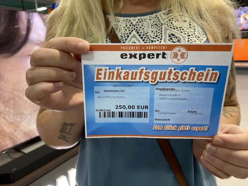 Höxter (kp). Die Resonanz auf unser Gewinnspiel war überwältigend! Knapp 2000 Leserinnen und Leser haben teilgenommen, um den 250-Euro-Gutschein zu gewinnen, den wir im Rahmen der expert-Wiedereröffnung in Höxter verlost haben.