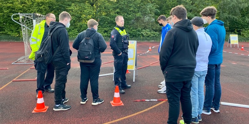 Bodenwerder (red). Mal eben auf das Handy gucken, um zu sehen, wer gerade geschrieben hat? Bloß nicht! Die Schülerinnen und Schüler der Jahrgänge neun und zehn der Oberschule Bodenwerder mussten beim Training mit der Polizei am Donnerstag zugeben, dass das keine gute Idee ist. Hauptkommissar Carsten Minasch, Polizeioberkommissar Henning Dörrier, Polizeioberkommissarin Simone Kalmbach und Polizeikommissarin Larissa Ohms haben im Zuge der Verkehrssicherheitswoche der Polizei Holzminden nicht nur schockierende Fakten mitgebracht, sondern auch Gokarts und E-Scooter, um den Schülerinnen und Schülern die Fakten erlebbar zu machen.