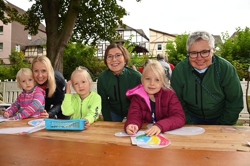 Mittendrin statt nur dabei war auch das neue Gesicht der Landesgartenschau, Madita Alberding als Landesgartenschau-Elfe Holli. Sie schlenderte über das Gelände, war überall ein gerngesehener Gast und ein beliebtes Fotomotiv. Die drei Schwestern Ella (2), Marie (4) und Lina (6) waren ganz besonders begeistert von Holli. Sie bemalten kleine Elfen-Flügel am Stand des Petri-Ganztags unter Anleitung von Silke Schulz und Gabi Schubring. Überhaupt hat die Gartenschau-Gesellschaft mit viel Programm aufgewartet. Kinder konnten nicht nur malen oder basteln, sondern auch einen Bagger bedienen und eine virtuelle Fahrradtour über das Landesgartenschau-Gelände unternehmen. Es gab neben einem umfangreichen Kinderprogramm auch Live-Musik von der Street-Band Holzminden. Für Interessierte bot die Gartenschau-Gesellschaft Baustellenführungen entlang der Weserpromenade an, die Ausblicke auf das Großevent im Jahr 2023 vermittelte. „Mit den Bauarbeiten werden große verkehrliche Herausforderungen einhergehen“, sagte Daniel Hartmann. Er bat daher alle Bürgerinnen und Bürger um Verständnis und Geduld während dieser anstrengenden Phase. Die Entschädigung dafür gebe es laut Hartmann dann ab dem Frühjahr 2023, wenn die Landesgartenschau startet.