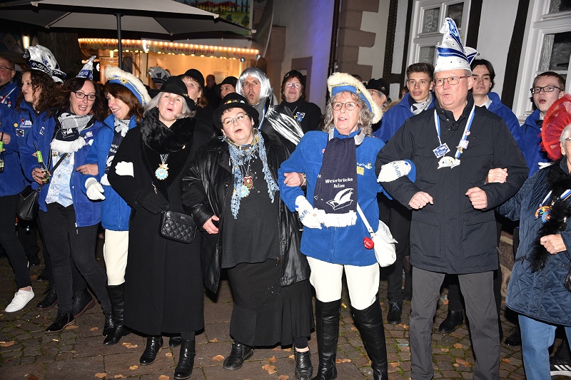 Beverungen (TKu). Voller Marktplatz, spannendes Warten, Nonstop Programm und gute Stimmung – Mit diesen Worten könnte man die Karnevalssessionseröffnung des Carnevalsvereins Weserbrücke e.V. (CVWB) mit Proklamation der Prinzenpaare auf dem Beverunger Marktplatz beschreiben. Voller Marktplatz: Mehr als 600 Närrinnen und Narren kamen auf dem Marktplatz in Beverungen zusammen, um gemeinsam die neuen Prinzenpaare zu feiern. Erstmals fand die Proklamation am Elften im Elften auf dem Marktplatz und nicht in der Volksbankfiliale Beverungen der Verbundvolksbank Höxter, was der Corona-Pandemie geschuldet war. Spannendes Warten: Bis zuletzt blieb es spannend, wer die neuen Totalitäten sind. Die bisherigen Prinzenpaare "Marcus, der expertelle Nette" und "Serena, die schnittige Brünette" sowie Kinderprinz "Jonas, der Rasante" und Kinderprinzessin "Jana, die Elegante" wurden nach ihrer Corona bedingten zweijährigen Amtszeit nun von CVWB-Präsident Friedhelm Dierkes verabschiedet. Die neuen Totalitäten sind Prinz Holger der Bilanzierende (Holger Kreiter) mit Prinzessin Susanne die Kassierende (Susanne Wolf) aus Beverungen und das Kinderprinzenpaar sind Prinz Johannes der Charmante (Johannes Haake) mit Prinzessin Emilia die sportlich Rasante (Emilia Kriwet) aus Beverungen. Nachdem sie die Insignien erhalten haben, mussten sie von der Bühne und auf die Tanzfläche für den traditionellen Prinzenpaar-Tanz und die haben der 56 Jahre junge Prinz Holger Kreiter und seine ein Jahr jüngere Prinzessin Susanne Wolf mit dem Walzer „Rut sin die Ruse“ zum Beben gebracht und andere mitgerissen. Die scheidenden Prinzenpaare mussten mittanzen. Zuvor wurden sie mit Geschenken und Karnevalsorden verabschiedet. Nonstop-Programm: Durch das durchgehende närrische Programm führten CVWB-Präsident Friedhelm Dierkes und die neue Sitzungspräsidentin Emily Buxton mit viel Charme und Witz. Nonstop begeistert haben das Tanzmariechen, das Tanzpaar und die Garden mit ihren neuen Tänzen, die sie der Bevölkerung erstmals vorstellten. Fehlen durfte auch nicht der Hauptsponsor, die Verbundvolksbank Höxter. Deren Mitarbeiterinnen und Mitarbeiter liefen dem Motto gerecht als Außerirdische auf, denn „Aus der Urzeit bis ins All – zusammen feiern wir Carneval“, so lautet das diesjährige Sessionsmotto des CVWB. Den Menschen gefiel diese neue Art der Veranstaltung und Corona war eine Zeit lang vergessen. Vielen habe es auf dem Marktplatz sehr gefallen, wie sie gegenüber Höxter-News erklärten und angeregt wurde auch mehrfach, diese Veranstaltung generell auf den Marktplatz zu verlegen. Das schloss auch CVWB-Präsident Friedhelm Dierkes in einer seiner Reden nicht gänzlich aus. Der CVWB habe nun fast ein Jahr, darüber nachzudenken, so Dierkes. Am bevorstehenden Samstag, den 13. November geht es weiter mit dem närrischen Treiben, dann startet ab 18:11 die Eröffnungsparty in der Beverunger Stadthalle mit anschließender Mallorca-Party ab 21 Uhr.