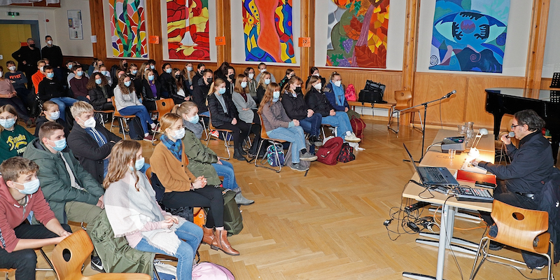 Die Schüler:innen lauschten aufmerksam und teilweise schockiert den Ausführungen des Autors, der von seiner großen Liebe, gelungenen Untergrund-Konzerten, aber auch den Bedingungen der Isolationshaft erzählte. „Ich habe gedacht, dass wird nur ein wissenschaftlicher Vortrag, aber das da jemand davon berichtet, was er selbst erlebt hat, war krass“, so ein Schüler nach dem 90minütigen Vortrag Pochops. Die Lesung diente als Auftaktveranstaltung des zum wiederholten Male stattfindenden Projektes „Wir und die Anderen“. In diesem Jahr soll der Fokus auf „Jugend in der Diktatur – ein Leben zwischen Anpassung und Widerstand“ gelegt werden. „Die Biographie Pochops bietet dabei viele Anknüpfungspunkte, von denen aus unsere Schüler:innen Projektideen entwickeln können und dann in angemessener Form präsentieren“, so Annett Schulze, Projektkoordinatorin der PGS.