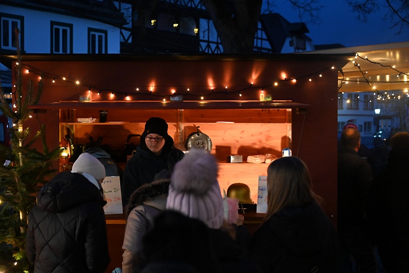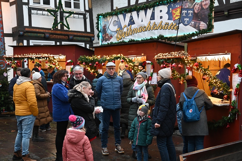 Beverungen (TKu). Am dritten Adventswochenende verwandelte sich der Rathausplatz in Beverungen erneut in eine festlich dekorierte Hüttenlandschaft. Der Sternenmarkt, organisiert von Beverungen Marketing und unterstützt durch zahlreiche heimische Vereine, zog hunderte Besucherinnen und Besucher von ganz Jung bis Alt an. Mit einem vielfältigen Programm und einer einladenden Atmosphäre bot der Markt eine gelungene Mischung aus Unterhaltung und weihnachtlichem Flair. Das Zentrum des Geschehens bildeten sechs weihnachtlich geschmückte Hütten und Stände, die hauptsächlich kulinarische Köstlichkeiten anboten. Ob Schaschlik und Zuckerwatte vom Feuerwehrverein St. Florian, Glühwein des Karnevalsvereins CVWB oder Waffeln und Kekse der Bäckerei Rode – für jeden Geschmack war etwas dabei. „Die Vereine sind das Herzstück des Sternenmarktes“, betonte Verena Hoppe von Beverungen Marketing.