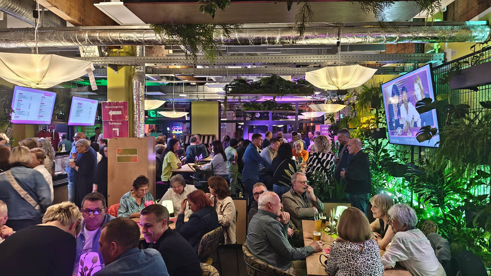Für ruhigere Momente bot ein liebevoll gestalteter Raum, der dem „Strandkorb“ nachempfunden ist. Leise Musik, bequeme Sitzecken und ein echter Strandkorb direkt vor dem Eingang sorgten für die typische Atmosphäre von damals. An der Bar gab es Klassiker wie Bier und Sekt, aber auch sommerliche Cocktails wie Pina Colada, Mojito oder „Sex on the Beach“. Treffpunkt für viele: das create:bistro, an der alte Bekannte sich bei einem Drink wiederfanden und in Erinnerungen schwelgten. Auf digitalen Bildschirmen liefen Fotos aus den alten Zeiten – Momente aus der Pub-Historie, die manch einem ein nostalgisches Lächeln ins Gesicht zauberten.