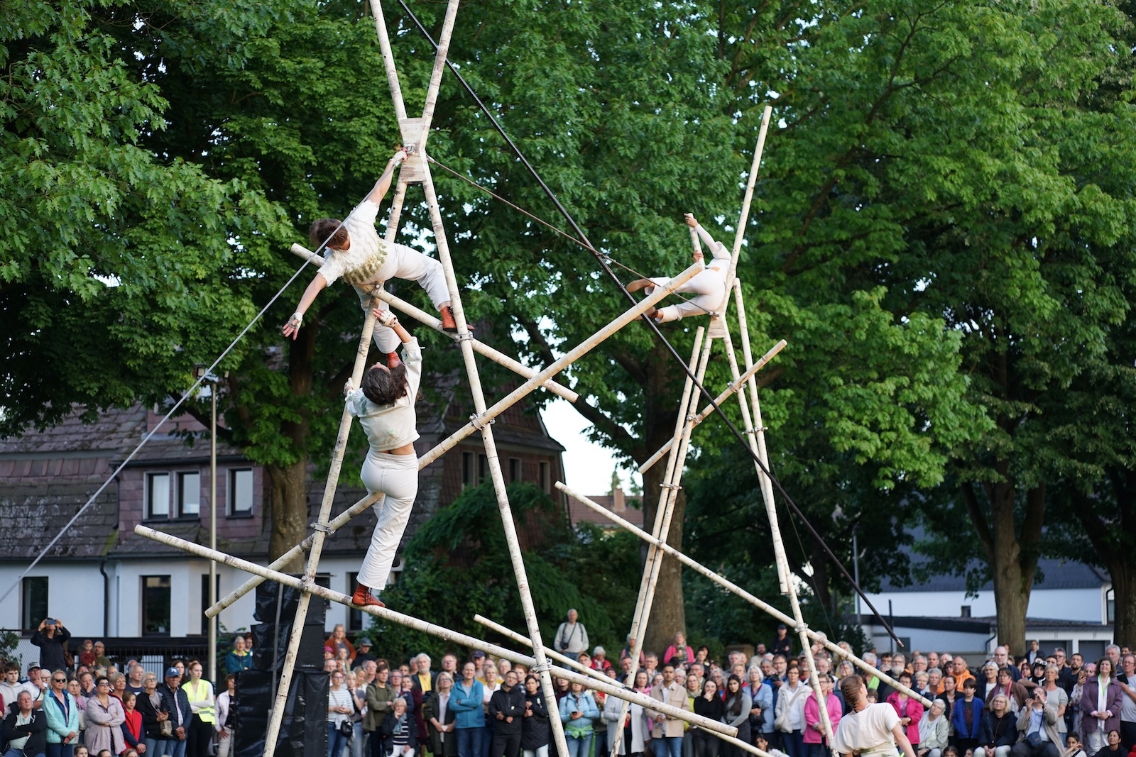 Selbst wechselhaftes Wetter und Regenschauer hielten das Publikum am Abschlusstag nicht davon ab, mit Regenschirmen und Applaus ihre Begeisterung zu zeigen. Fast alle geplanten Vorstellungen konnten stattfinden – ein Verdienst des eingespielten Organisationsteams. „Ich bedanke mich allen Helfern, der Polizei, den Rettungskräften, dem Ordnungsdienst, dem Team Stadtverwaltung und allen, die hinter diesem Festival stehen“, so Belke bei der Übergabe des Publikumspreises. Augenzwinkernd ergänzte er: „Ich hätte nichts dagegen, wenn wir einfach so weitermachen.“