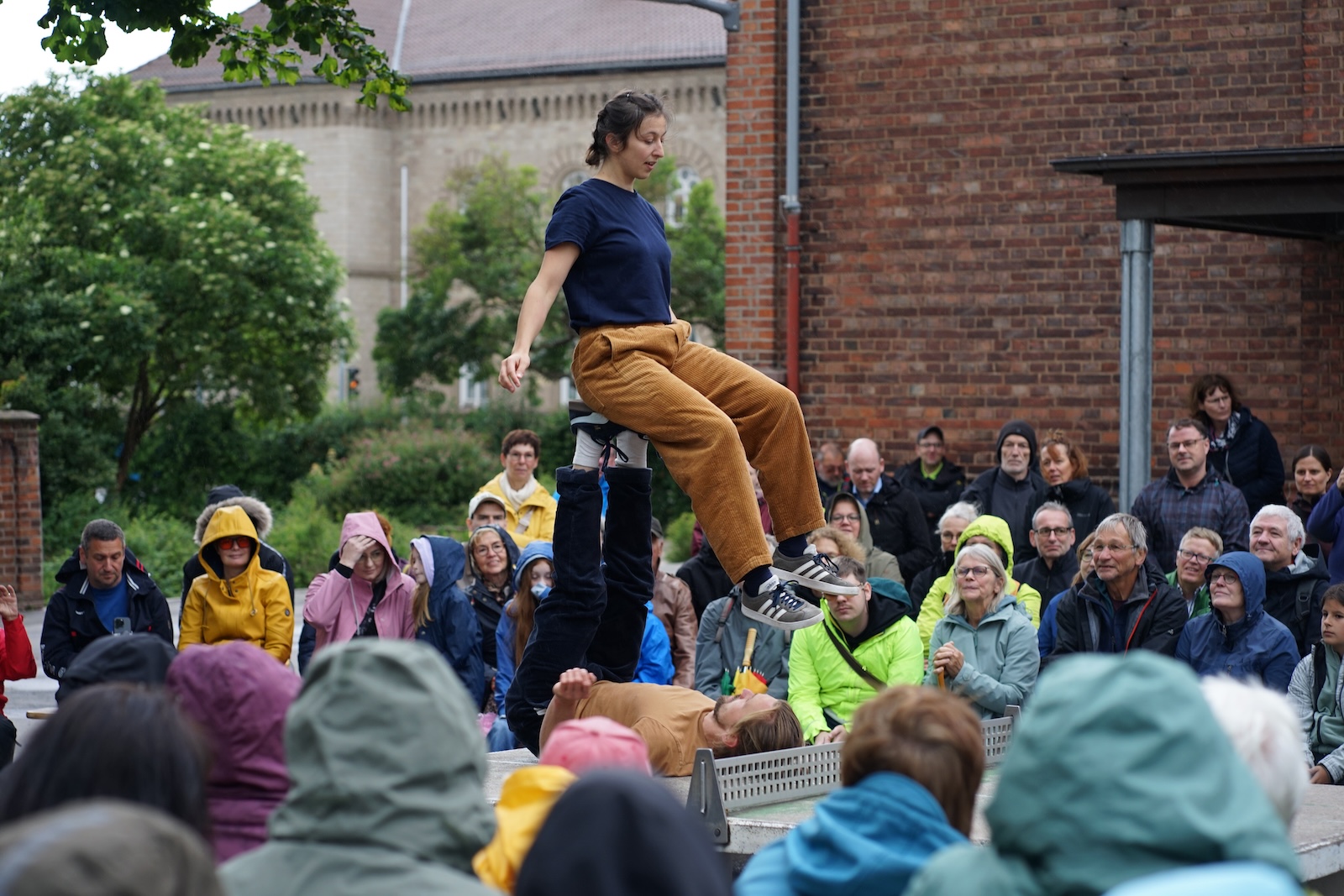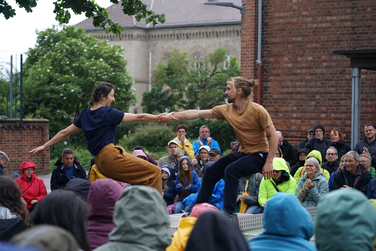Der Freitagabend beeindruckte mit zwei fulminanten Aufführungen: „Wild“ von Motionhouse und die Deutschlandpremiere von „Épiphytes“ durch die Cie. des Chaussons Rouges sorgten für Staunen und langanhaltenden Applaus. Auch am Samstag fesselte das Festival mit tiefen und packenden Emotionen – bei „Arrived“ von Adrian Schvarzstein & Jurate Sirvyte Rukstele und „Emergency Exit“ von der Gruppe ADHOK. Doch auch Humor stand im Mittelpunkt mit der Joshua Monten Tanzcompagnie und Pere Hosta. Akrobatisch wurde es mit der 101concrete Kompagnie. Directie & Co. zog das Publikum durch Kopfhörer in eine gemeinsame Welt und schaffte es in Minuten aus Fremden eine Gemeinschaft entstehen zu lassen. Tiefgründig und berührend wurde es ebenfalls bei Mimbre mit „Weight(less)“ und Theater Titanick & bodytalk, die in ihrem Stück „Kipppunkt“ den Klimawandel thematisierten.