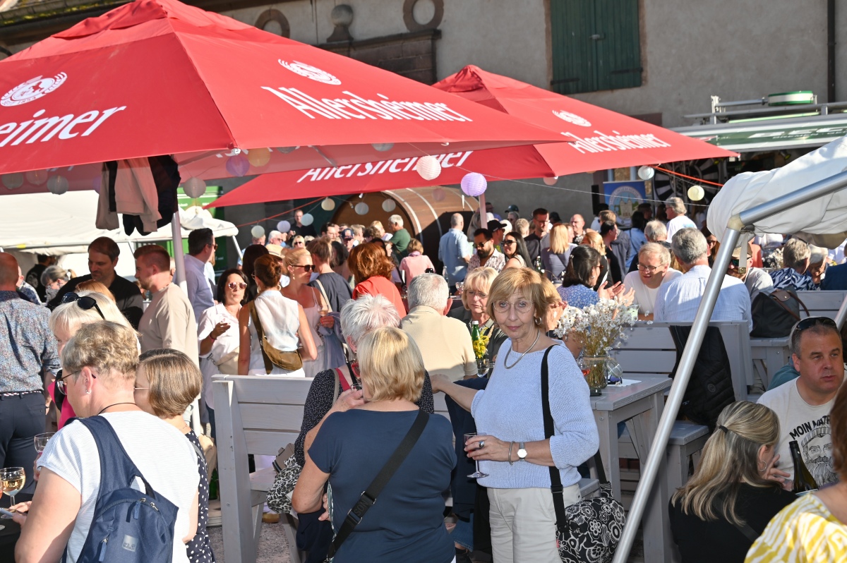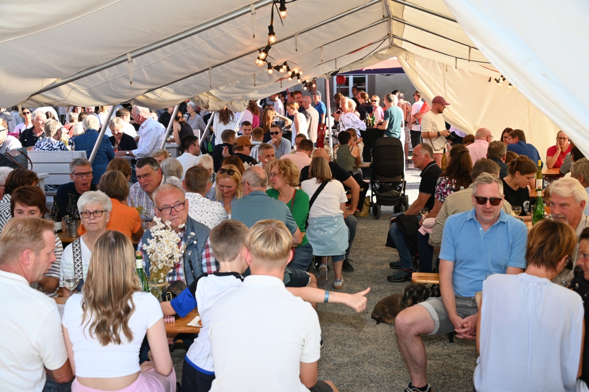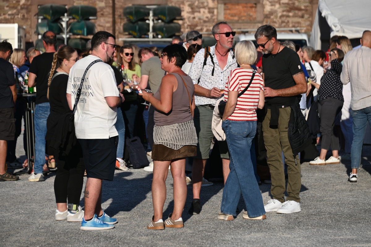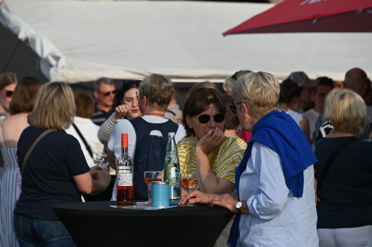Höxter (TKu). So viele Gäste wie noch nie zog das Benefiz-Weinfest am vergangenen Samstag in den Corveyer Domänenhof: Geschätzt mehr als 1.000 Besucherinnen und Besucher genossen bei strahlendem Sonnenschein, gutem Wein, kulinarischen Spezialitäten und stimmungsvoller Musik das Weinfest. 1.003 Weinflaschen gingen über die Theke – im Vorjahr waren es 630. Bereits vor 16 Uhr strömten die ersten Gäste auf das Gelände vor dem Corveyer Weinhaus. Zum siebten Mal luden die Serviceclubs Ladies’ Circle 64 Höxter-Holzminden und Round Table 150 Höxter-Holzminden zu dem Fest ein, das bereits zum vierten Mal in der historischen Kulisse des Domänenhofs stattfand. „Bei traumhaftem Wetter und in malerischer Umgebung mit Blick auf das imposante Westwerk von Corvey bot sich eine ideale Atmosphäre“, meinte eine Besucherin und ergänzte: „Die Atmosphäre des Domänenhofs passt perfekt zum Weinfest.“
