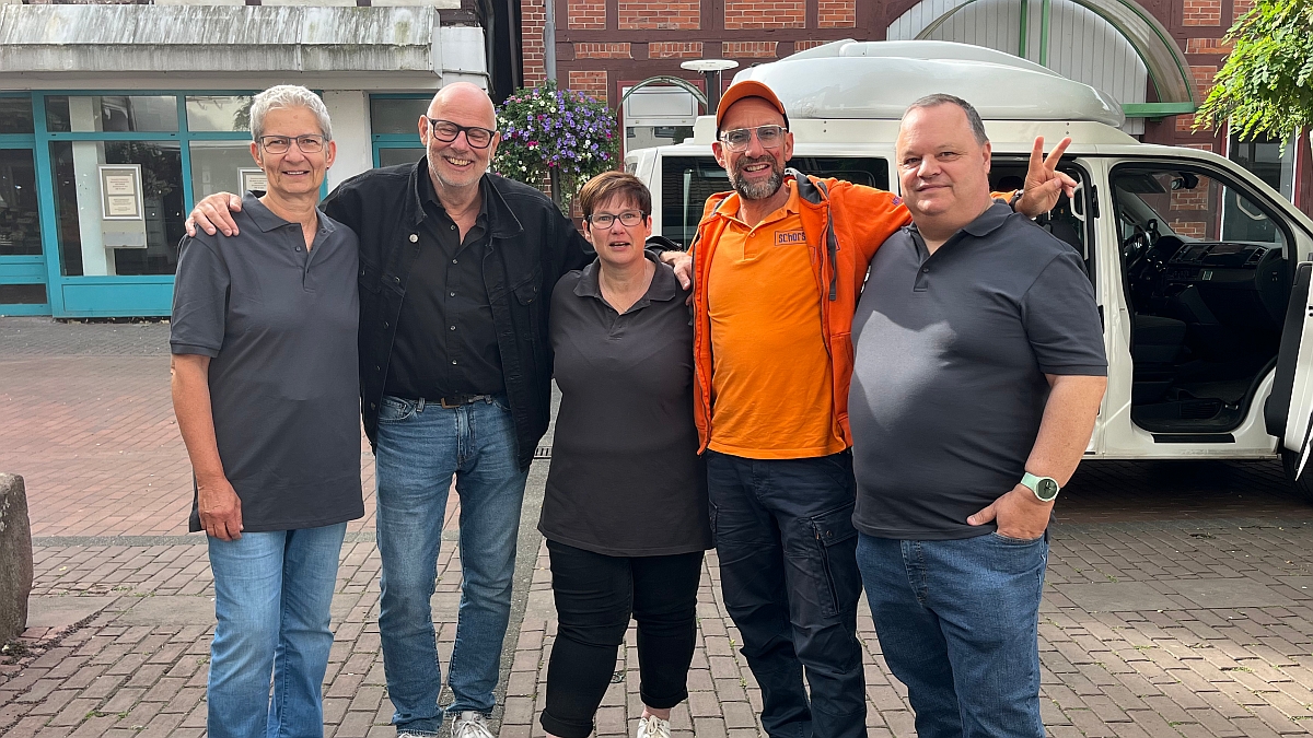 Innerhalb von zwei Liedtiteln musste sie beim Sender zurückrufen – mit tatkräftiger Unterstützung vieler Helfer gelang dies. Um 9.30 Uhr erfolgte die Übergabe des symbolischen Schecks in der Mittleren Straße 6 vor dem Hospiz-Zentrum.
