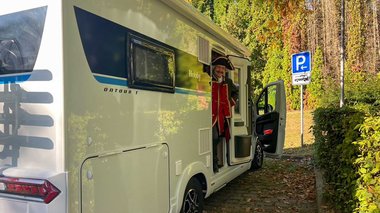 Bei strahlend blauem Himmel startete die zehnköpfige „Reisegruppe“ am Parkplatz am Hagen in Bodenwerder. Zwei Fahrzeuge standen bereit: ein SVR Caddy und ein modernes Wohnmobil, letzteres zum ersten Mal vom Samtgemeindebürgermeister und ersten Vorsitzenden der Solling-Vogler-Region, Sebastian Rode, gesteuert. Mit an Bord: Joachim Merker, besser bekannt als der Baron von Münchhausen, der für humorvolle Unterhaltung sorgte. Schon die ersten Minuten waren geprägt von guter Stimmung und gespannter Vorfreude auf die bevorstehenden Stationen.