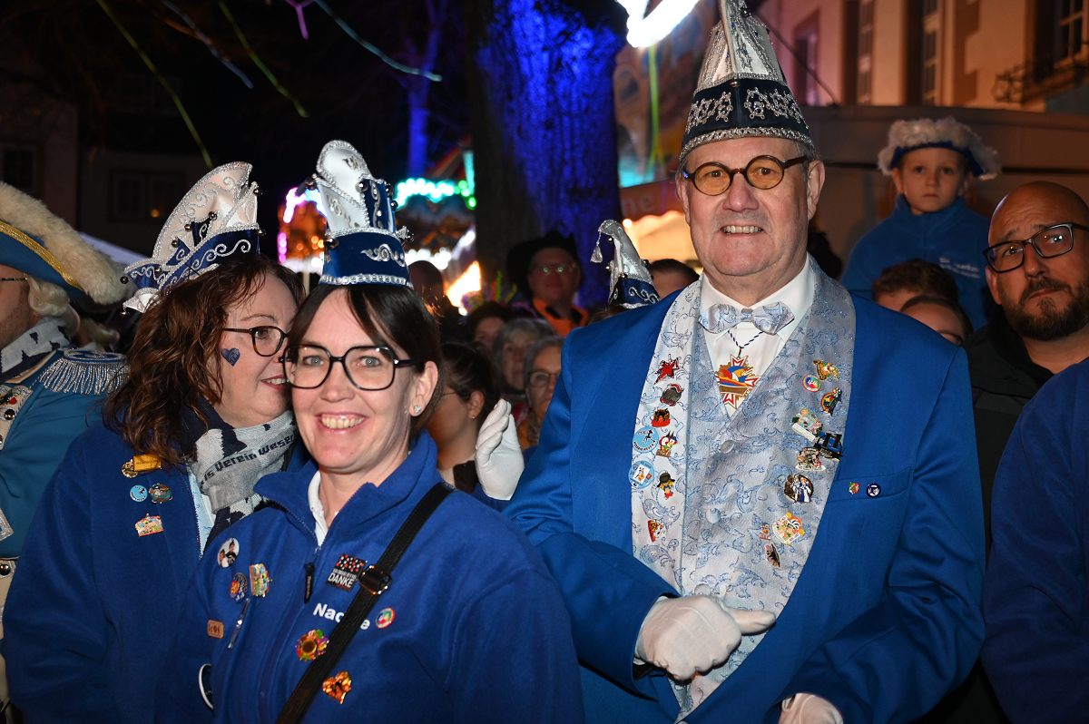 Nach dem Rathaussturm war das närrische Treiben noch lange nicht vorbei. Am Nachmittag startete in Beverungen das bunte Programm auf dem Kellerplatz – begleitet von Musik, Tanzdarbietungen der Garden und vielen Aktionen für Groß und Klein. Höhepunkt des Tages war die Proklamation der neuen Tollitäten um 17.11 Uhr: Prinz Florian, „der balearisch Regierende“ (Kastens), und Prinzessin Carena, „die ewig Marschierende“ (Zarnitz), übernehmen das närrische Zepter der Jubiläumssession. An ihrer Seite führen „Till, der fröhlich Kreative“ (Marx) und Prinzessin „Johanna, die glitzernd Aktive“ (Kleinschmidt) die jungen Karnevalistinnen und Karnevalisten an. Mit großem Applaus wurden zugleich die scheidenden Tollitäten verabschiedet, die sich mit einer Ehrenordenverleihung aus ihren Ämtern verabschiedeten. Auch das WDR-Fernsehen war vor Ort und berichtete aus der Karnevalshochburg im Dreiländereck.