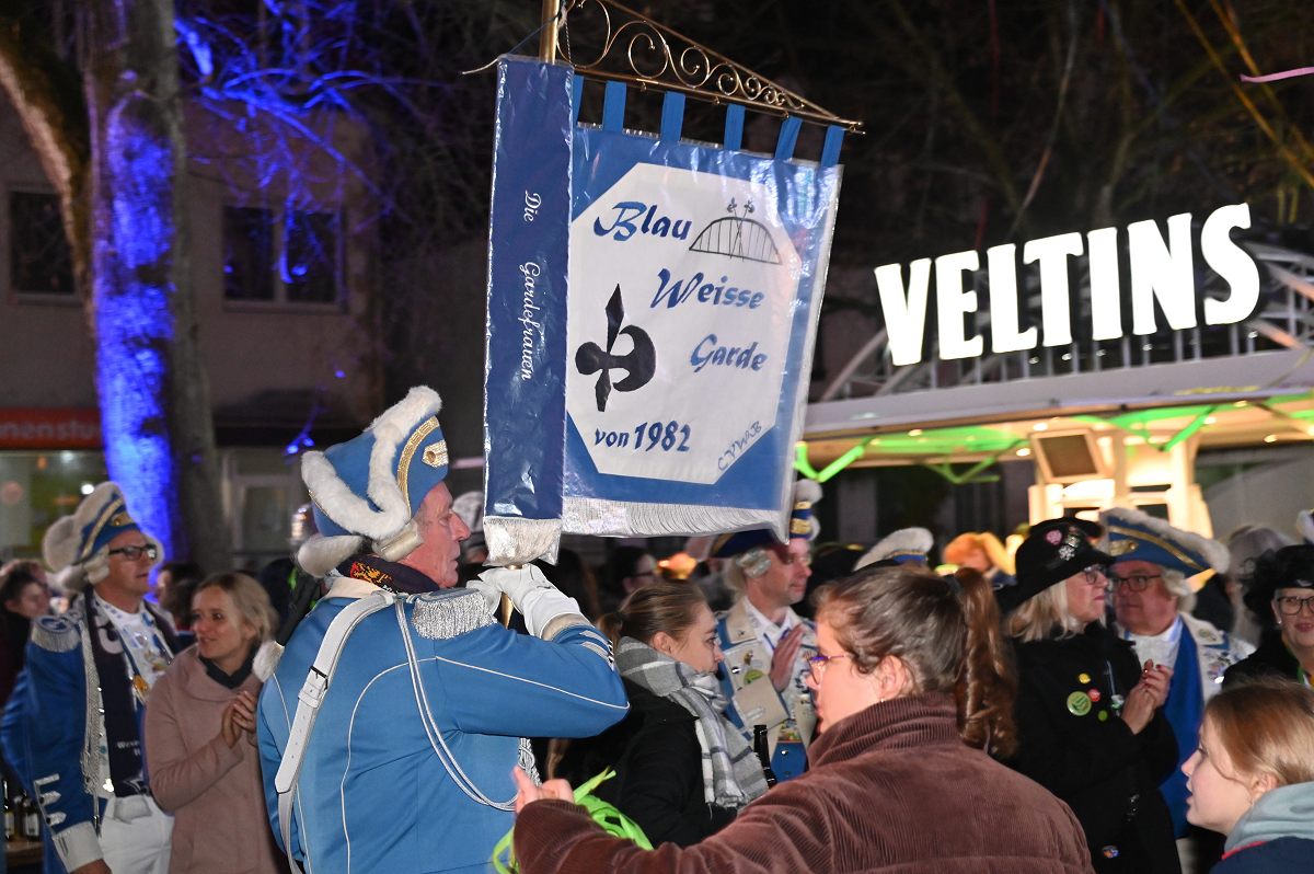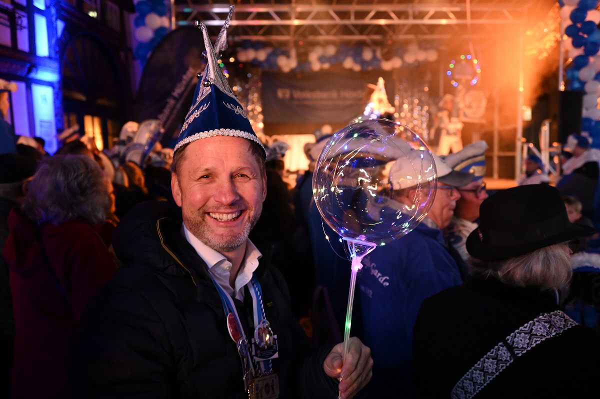 Die Jecken aus Beverungen und Lauenförde ließen es sich zunächst nicht nehmen, traditionsgemäß den Schlüssel zum Roten Rathaus in Lauenförde zu erobern und das Rathaus zu erstürmen. Die Wächter des Schützenvereins Lauenförde von 1882 e.V. rückten mit einer schweren Kanone, einer kleinen Schützenarmee und einem massiven Schlagbaum an, um das Gebäude gegen die närrische Übermacht zu verteidigen. Auch zwei Burgwächter aus Beverungen, motiviert durch den neu gewählten Bürgermeister Tino Wenkel, stellten sich den Karnevalisten entgegen. Doch trotz ihrer lautstarken Verteidigungsstrategie blieb der Sieg der Jecken unausweichlich: Die Damen der blau-weißen Garde eröffneten den Angriff mit Konfetti-Kanonen, gefolgt von der Alten Garde, die mit Regenschirmen ein ungewohntes, aber wirkungsvolles Bild bot. Schließlich ebneten die männlichen Karnevalisten den Weg, indem sie den Schlagbaum kurzerhand beiseiteräumten und so die Verteidigungslinie durchbrachen. Unter großem Jubel zog die Narrenschar ins Rathaus ein. CVWB-Präsident Daniel Zarnitz zeigte sich begeistert über den gelungenen Auftakt der Jubiläumssession.