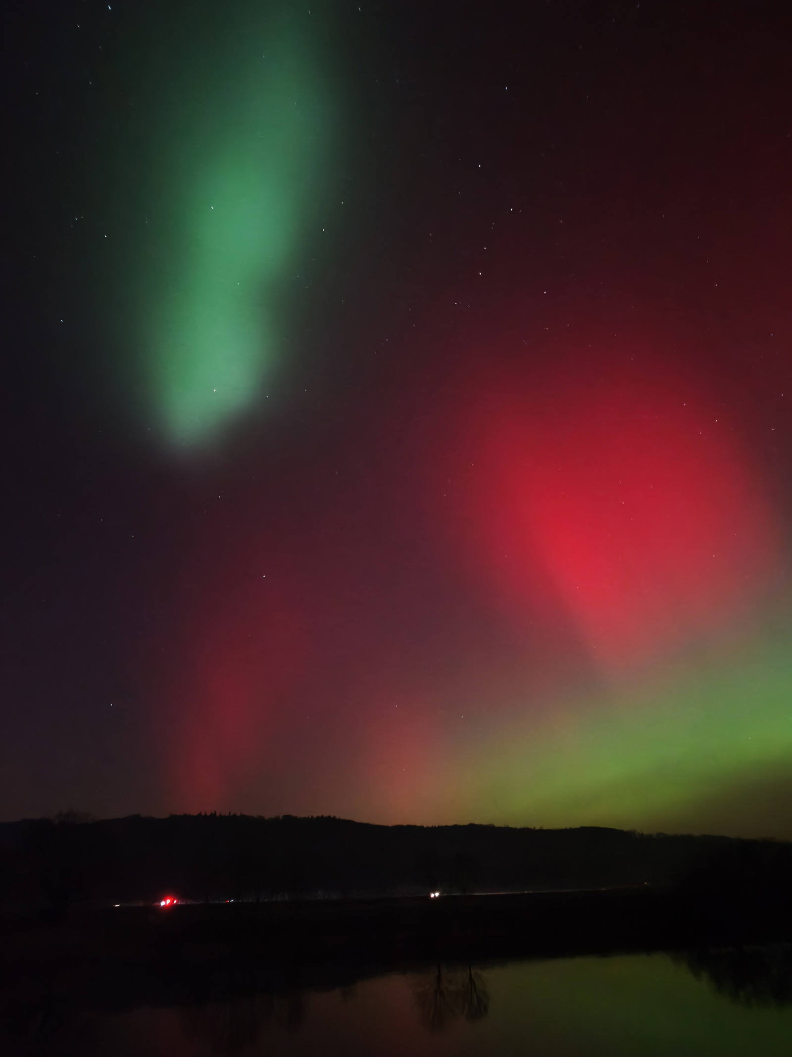 Normalerweise erscheinen Polarlichter in Mitteleuropa, wenn überhaupt, eher als blasses, weißliches Leuchten. Dass in dieser Nacht auch rötliche und grünliche Farbtöne deutlich erkennbar waren, gilt als klares Zeichen für eine besonders hohe Intensität. Sichtbare Farben mit bloßem Auge treten nur bei sehr starken geomagnetischen Ereignissen auf.