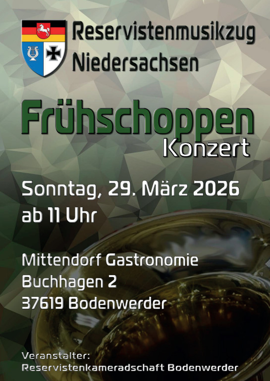Buchhagen (red). Am kommenden Sonntag, 29. März, ist es wieder so weit. Zum zehnten Mal gastiert das aus rund drei Dutzend Musikerinnen und Musikern bestehende Ensemble des Reservistenmusikzugs Niedersachsen in Buchhagen.