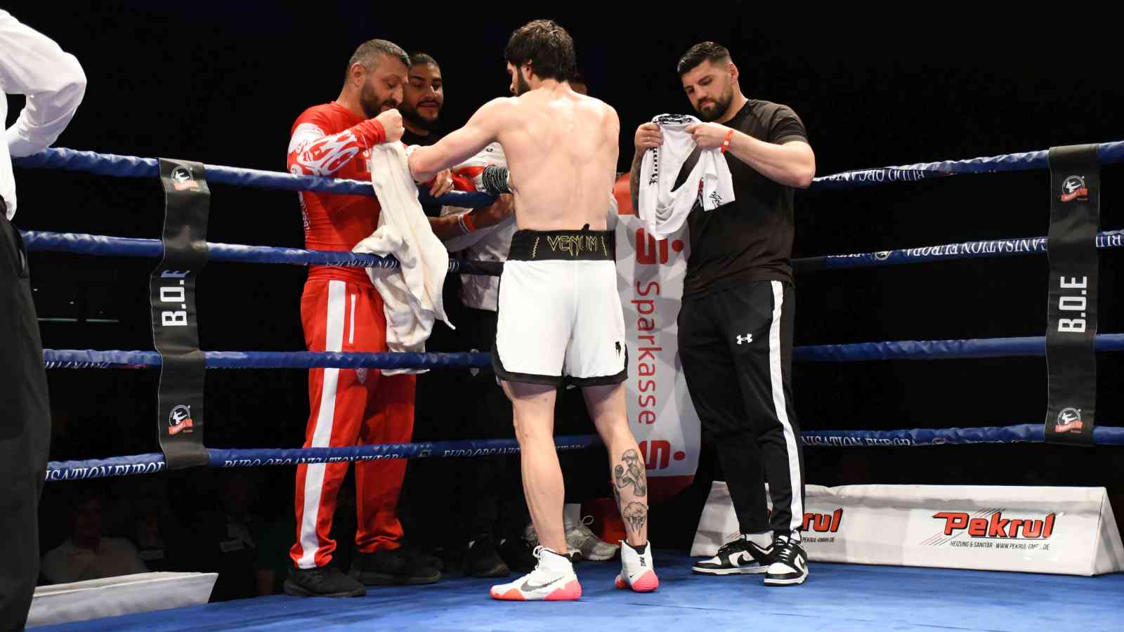 Richtig stimmungsvoll ging es bei dem Kampf vom Lokalmatador Rostam Ibrahim gegen Frank Rojas aus Venezuela zu. Von Beginn an war das Publikum da und verwandelte die Halle 39 in einen Hexenkessel. Rostam Ibrahim machte kurzen Prozess und beendete den Kampf in der ersten Runden schon nach 54 Sekunden mit einem harten Kopftreffer.