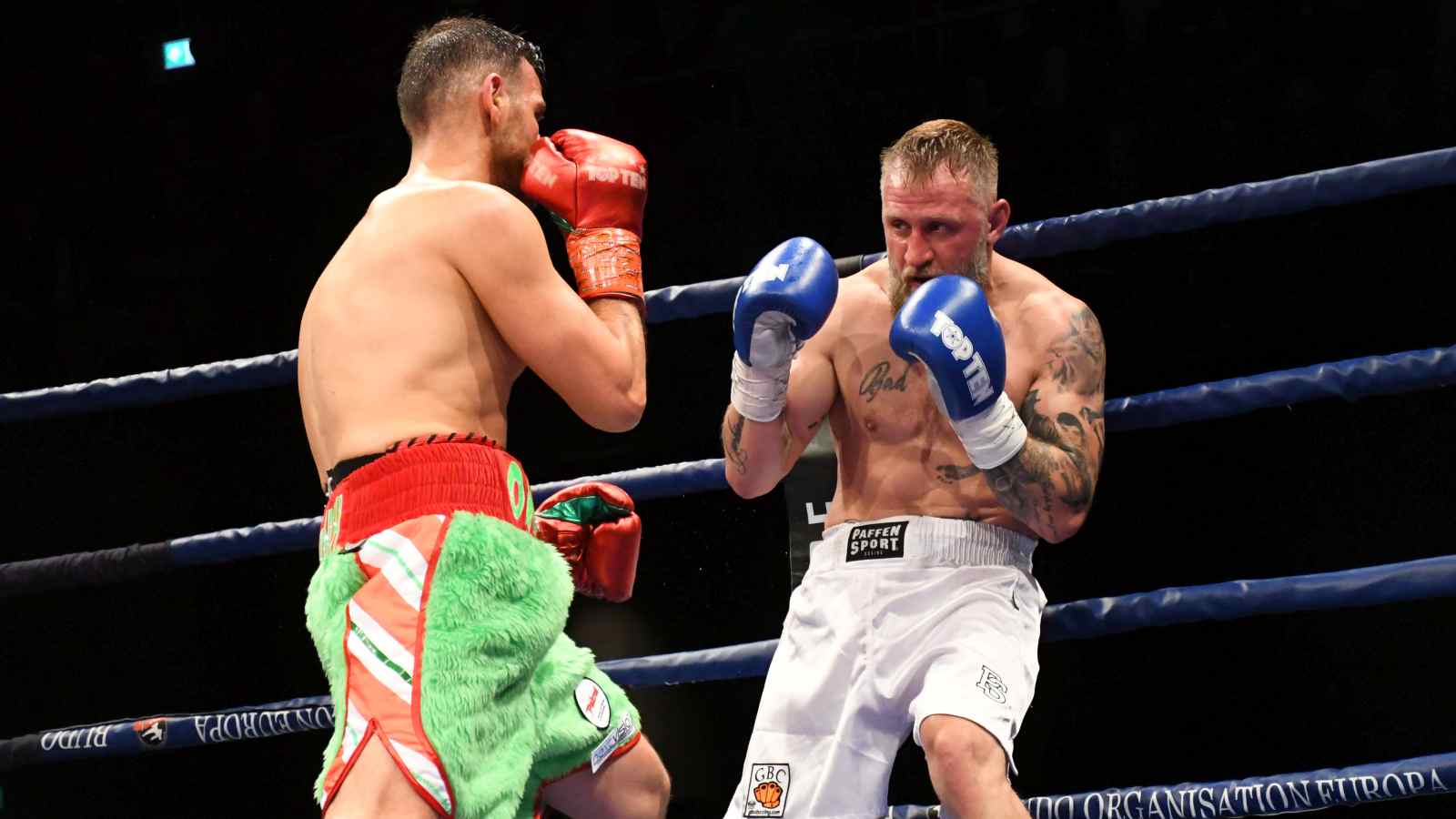 Nach einer Pause war es dann schließlich soweit. Der letzte Kampf von Omar Siala stand auf dem Programm. Zunächst betrat der Tscheche Miroslav Serban den Ring, ehe ein letztes Mal die Einlaufmusik von Omar Siala ertönte und der Lokalmatador sich auf den Weg in den Ring machte. Nach den Nationalhymnen von Tschechien und Deutschland flogen im Ring die Fäuste. Nach einer interessanten ersten Runde übernahm Siala mit vielen Körpertreffern angefeuert mit „Omar-Sprechchören“ immer mehr die Kontrolle über den Kampf. Siala drängte seinen Gegner in die Ringecken und raubte ihm mit Schlägen den Atem, aber Serban blieb stehen.