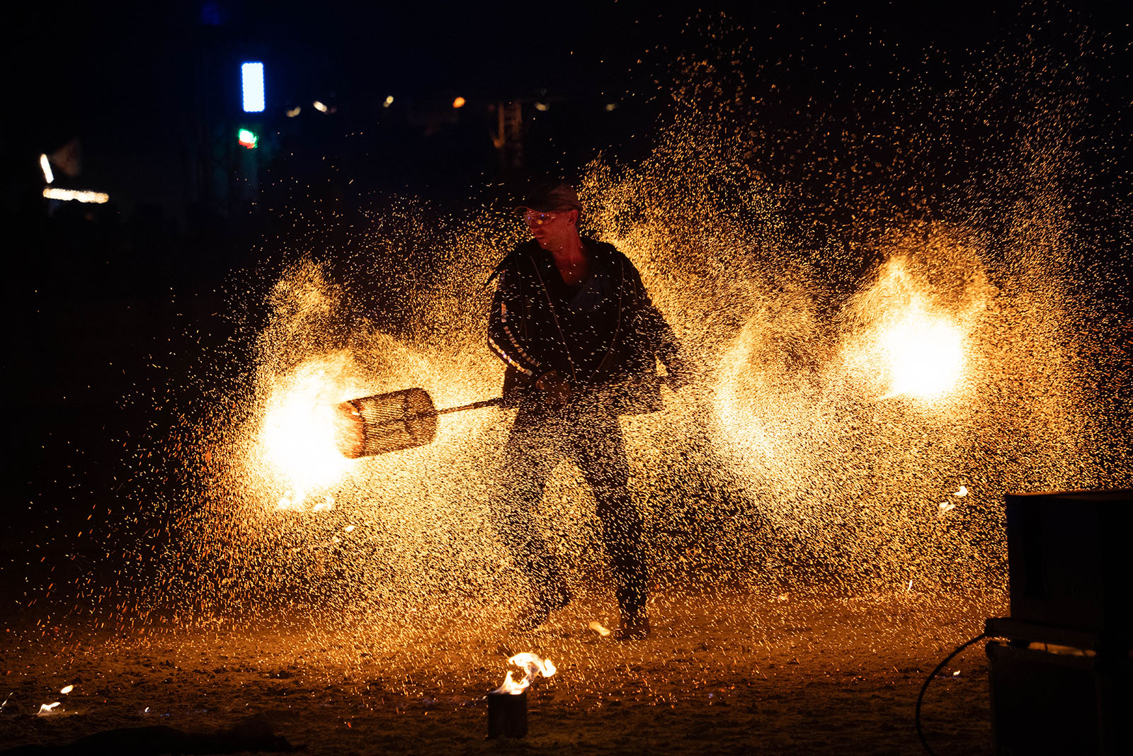 Nach dem Auftritt Tappes wurde es feurig heiß: Das Team von "Flamba" performte auf dem Reitturnier mit beeindruckenden Darbietungen. Es sprühten Funken, Fontänen aus Feuer erhellten den Platz, und die Wärme der Flammen erwärmte die abgekühlte Abendluft. Nach der Feuershow folgte eine beeindruckende Lasershow, die in Kombination mit epischer Musik ein unvergessliches Erlebnis bot.