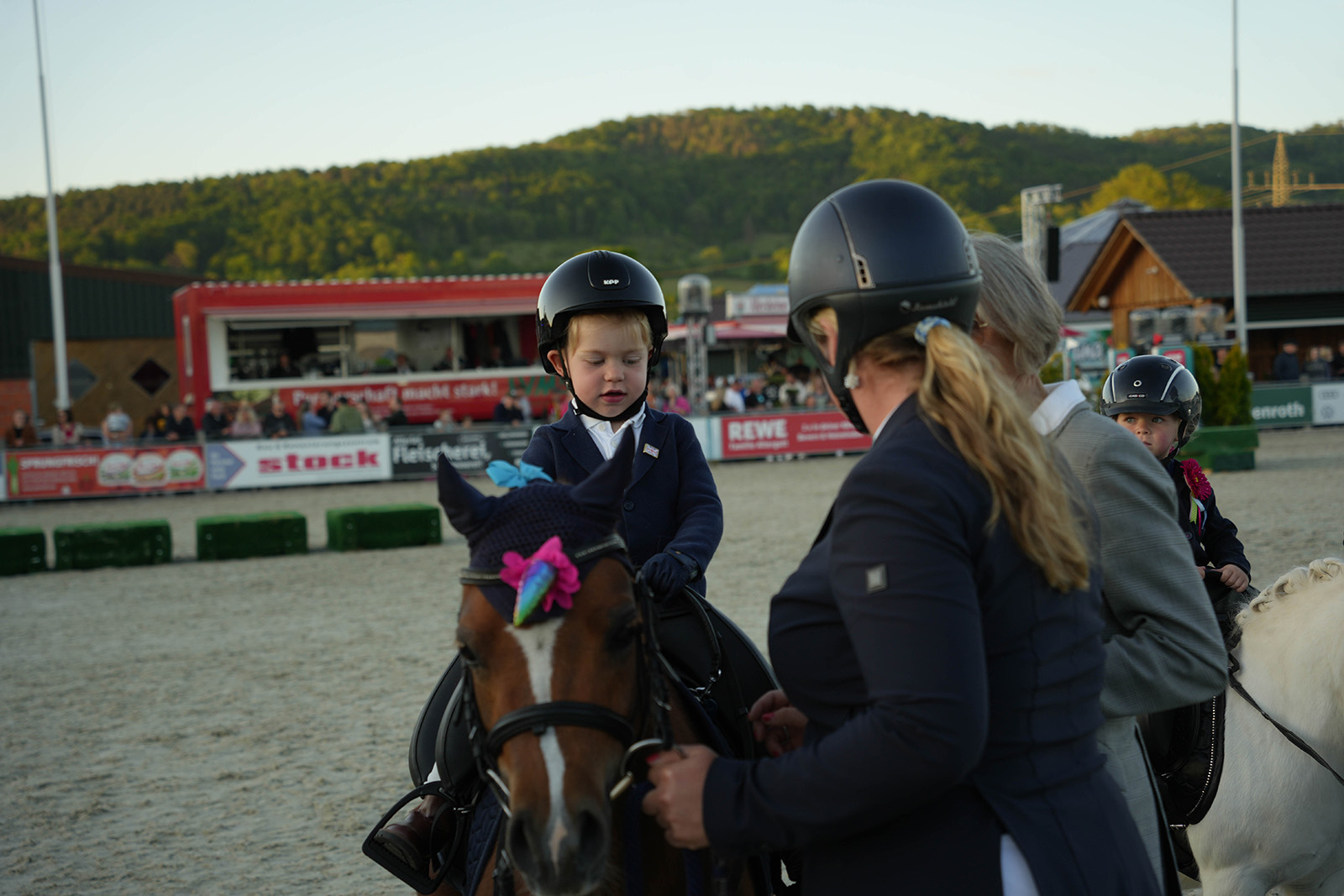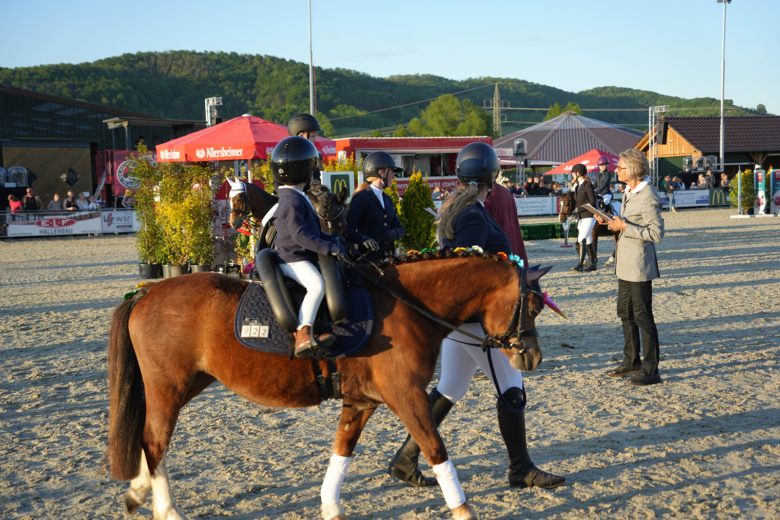 Bereits am Vormittag startete das Turnier mit der Amateur-Springprüfung der Klasse A**. Es folgten Prüfungen der Klassen M*, L, eine Zwei-Phasen-Springprüfung der Klasse S* sowie das Finale der „Prestige Italia Tour“ in der Klasse M*. Auch der Reitnachwuchs zeigte in einer gesonderten Prüfung sein Können – ob trabend, galoppierend, winkend oder mit einem High-Five: Die 14 jungen Reiterinnen und Reiter begeisterten das Publikum und gaben einen Vorgeschmack auf kommende Reiterkarrieren.