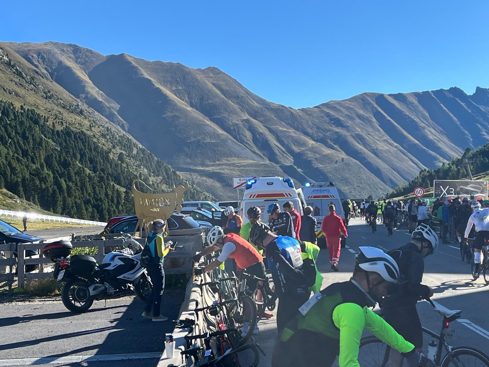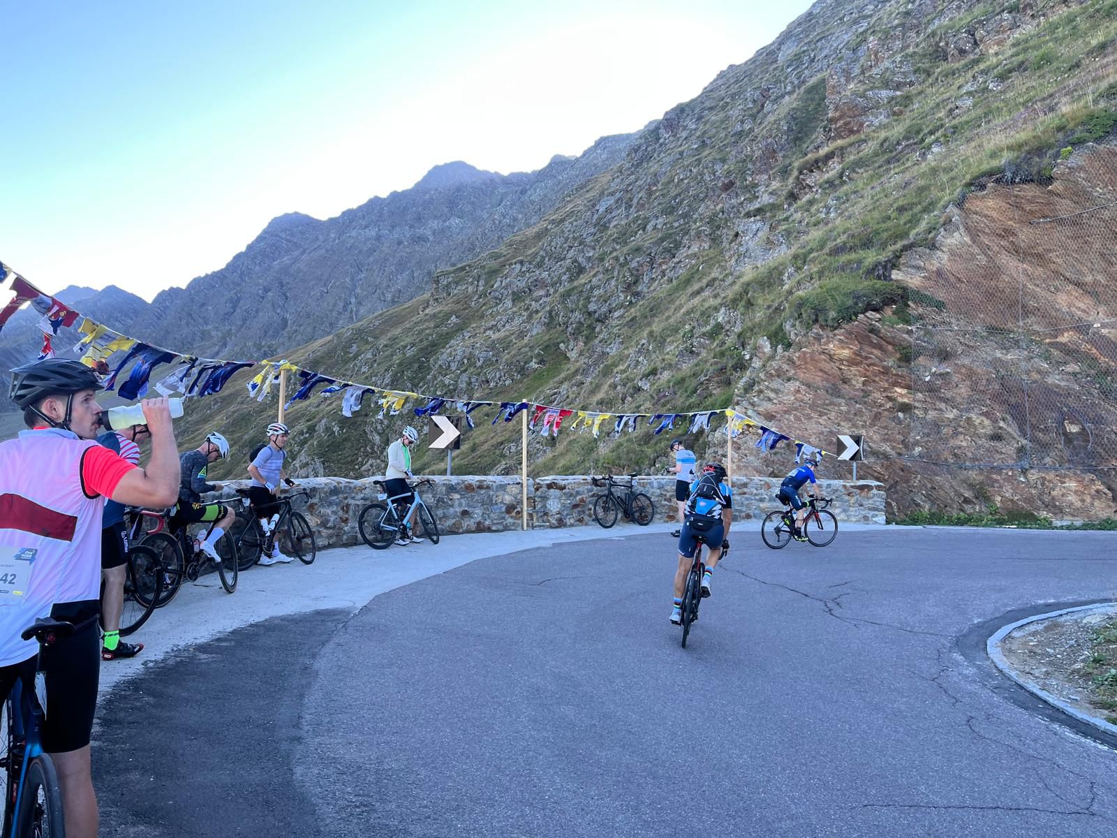 „Die Strecke ist besonders“, berichtete Oliver-Jens Schiller im Gespräch. „Teilweise sind die Pässe komplett abgesperrt – die Kulisse ist einfach unglaublich.“ Mit strahlendem Sonnenschein am Renntag und fünf perfekt organisierten Verpflegungsstationen fanden die Fahrer ideale Bedingungen vor. Das Ziel: Die 14-Stunden-Zeitbegrenzung einhalten – wer zu spät kommt, wird aus dem Rennen genommen und erhält kein Finisher-Trikot.