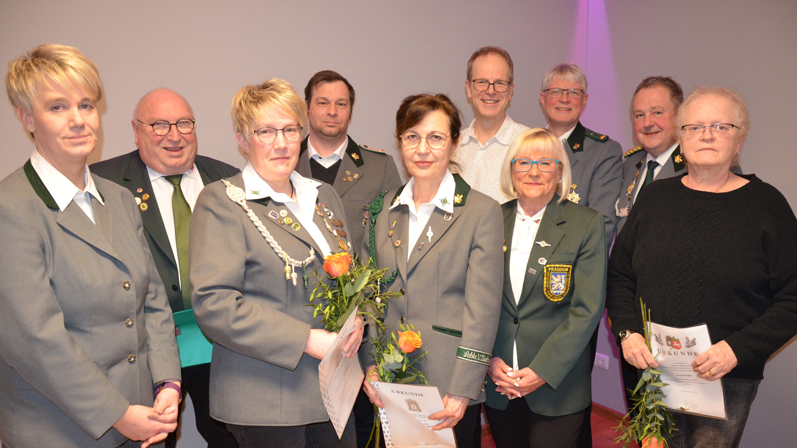 Ein weiterer Höhepunkt der Versammlung waren die Ehrungen langjähriger Mitglieder. Vorsitzender Carsten Jakob und stellvertretende Vorsitzende Stefanie Gutacker nahmen diese gemeinsam mit dem Kreisschützenverband Holzminden vor, der durch Ehrenmitglied Bernd Schwarzer und Geschäftsführerin Liane Hampel vertreten war.