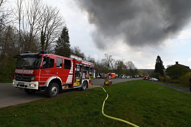 Höxter (TKu). Warum der Schießstand des Schützenvereins am Donnerstag gebrannt hat, das ist bislang noch nicht geklärt. Die Brandermittler der Polizei werden laut Aussage von Polizeisprecher Jörg Niggemann erst nach Ostern anrücken. Bis dahin bleibt die Brandruine polizeilich gesperrt, so Niggemann. Laut einem Vereinsmitglied sei erst der Strom ausgefallen und an einer Stelle wo die Kabel und die Technik untergebracht sind, sei schnell Rauch aufgestiegen. Außerdem soll ein Dachs oder Marder im Gebäude sein Unwesen getrieben haben. Ob das Tier ein Kabel angeknabbert hat, könne nicht ausgeschlossen werden, heißt es vom Mitglied des Schützenvereins. Der Brand hat sich nach der Rauchentwicklung jedenfalls rasant ausgebreitet. Die Feuerwehr spricht in so einem Fall von einer Durchzündung. Den Schaden beziffert die Polizei nach aktuellem Stand auf mehr als eine Millionen Euro. Großeinsatz für die Feuerwehren am Donnerstag: Schon in kilometerweiter Entfernung war die Rauchsäule des brennenden Schießstandes nahe Corvey am Donnerstagnachmittag wahrnehmbar. Schon beim Eintreffen der ersten Feuerwehrleute am Einsatzort so gegen 16:45 Uhr am späten Donnerstagnachmittag gab es für den Schießstand keine Rettung mehr. Die Flammen hatten bereits den gesamten Dachbereich erfasst. Sie loderten nach der Durchzündung stellenweise mehr als 20 Meter in die Lüfte. Die Feuerwehrleitstelle Brakel erhöhte den Alarm nach mehreren Anrufen von Augenzeugen schnell von „Feuer-3“ auf „Feuer-4“. Neben dem Löschzug Höxter und der Löschgruppe Brenkhausen wurden die Löschgruppen Albaxen, Lüchtringen und Stahle daraufhin hinzu alarmiert - später auch noch die Löschgruppen Lütmarsen, Godelheim und Bosseborn.