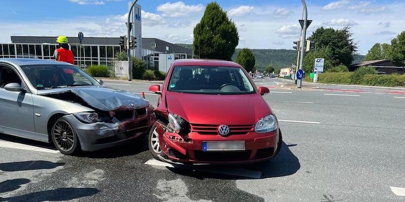 Holzminden (lbr). Am heutigen Donnerstagmittag gegen 14.40 Uhr ereignete sich ein Verkehrsunfall auf der Bülte-Kreuzung in Holzminden. Ein VW wollte aus Richtung Allersheim auf die Liebigstraße abbiegen. Dabei übersah der Fahrer einen entgegenkommenden BMW. Beide Fahrzeuge krachten zusammen. Der Fahrer des BMWs sowie sein Beifahrer wurden leicht verletzt, mussten jedoch nichts in Krankenhaus gebracht werden. Die Polizei schätzt bei beiden Fahrzeugen einen wirtschaftlichen Totalschaden. Die Feuerwehr Holzminden war mit drei Fahrzeugen und elf Personen vor Ort, sicherten die Unfallstelle, leiteten den Verkehr und nahmen die auslaufenden Betriebsmittel auf. Beide Fahrzeuge mussten abgeschleppt werden.