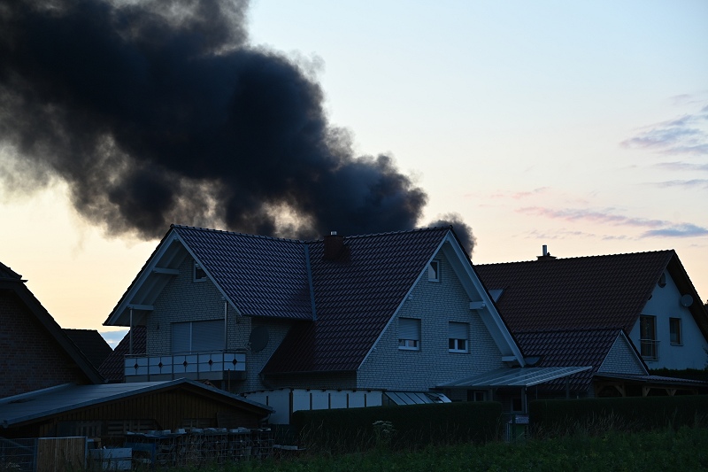 Steinheim (TKu). Die Rauchsäule des Großbrandes der alten Papiermühle von Steinheim war in einem Umkreis von mehr als 20 Kilometern Luftlinie zu sehen: Gegen 20:20 Uhr wurde Großalarm für die Feuerwehren in den Kreisen Höxter und Lippe gegeben. Zu diesem Zeitpunkt brannte es bereits ausgedehnt in der alten Papiermühle gegenüber der Kläranlage direkt an der Emmer gelegen. Immer wieder waren kleinere Explosionen zu hören, die durch die brennenden Stoffe ausgelöst wurden. Über die Handy-Warn-App des Bundes wurden die Menschen in der Umgebung mit einer Warnmeldung über eine „Starke Rauchentwicklung durch den Großbrand einer Kunststofffabrik“ informiert. Weil aktuell in dem Gebäude ausrangierte Kunststoff-Fenster lagern, die in Vollbrand standen und Giftstoffe ausgetreten sind, darunter soll auch Asbest sein, wurden die Menschen gebeten, Fenster und Türen geschlossen zu halten und Lüftungen auszuschalten. Die Feuerwehrleute nutzen in der Nähe des Brandortes zum Eigenschutz FFP-2-Masken oder den sogenannten „umluftunabhängigen Atemschutz“, um sich vor Giftpartikeln in der Umgebungsluft zu schützen. Im Einsatz befand sich auch der ABC-Zug des Kreises Höxter für Gefahrstoffe, um Luftmessungen durchzuführen sowie das Landesumweltamt. Auch wurde geprüft, ob Schadstoffe in den Emmer-Fluss gelangt sind. Ein Ergebnis lag zum Redaktionsschluss jedoch noch nicht vor.