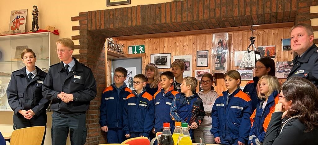 Jugendfeuerwehrwart Nils Helmer konnte mit seinem Betreuerteam an diesem Nachmittag 27 der 35 in der Jugendfeuerwehr tätigen Jugendlichen im Feuerwehrhaus begrüßen. Ebenso waren zahlreichen Führungskräfte aus der Samtgemeinde und der Ortsfeuerwehr sowie von der Politik und Verwaltung anwesend.