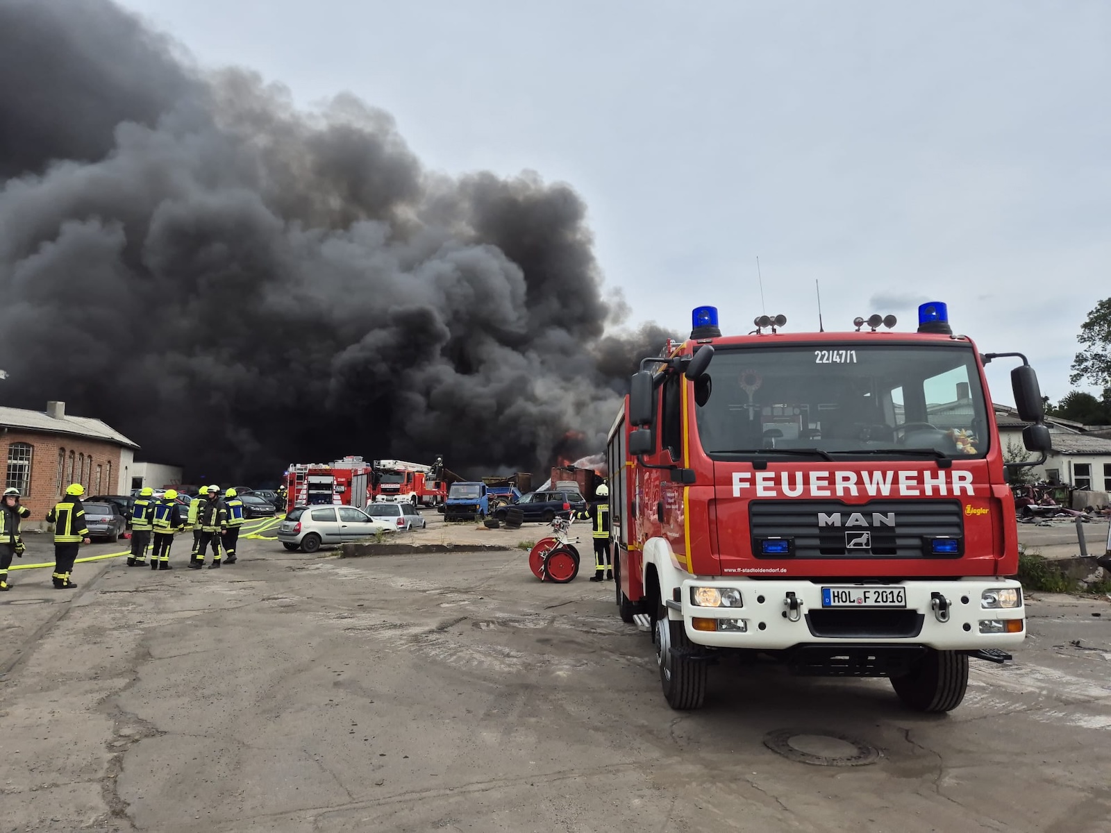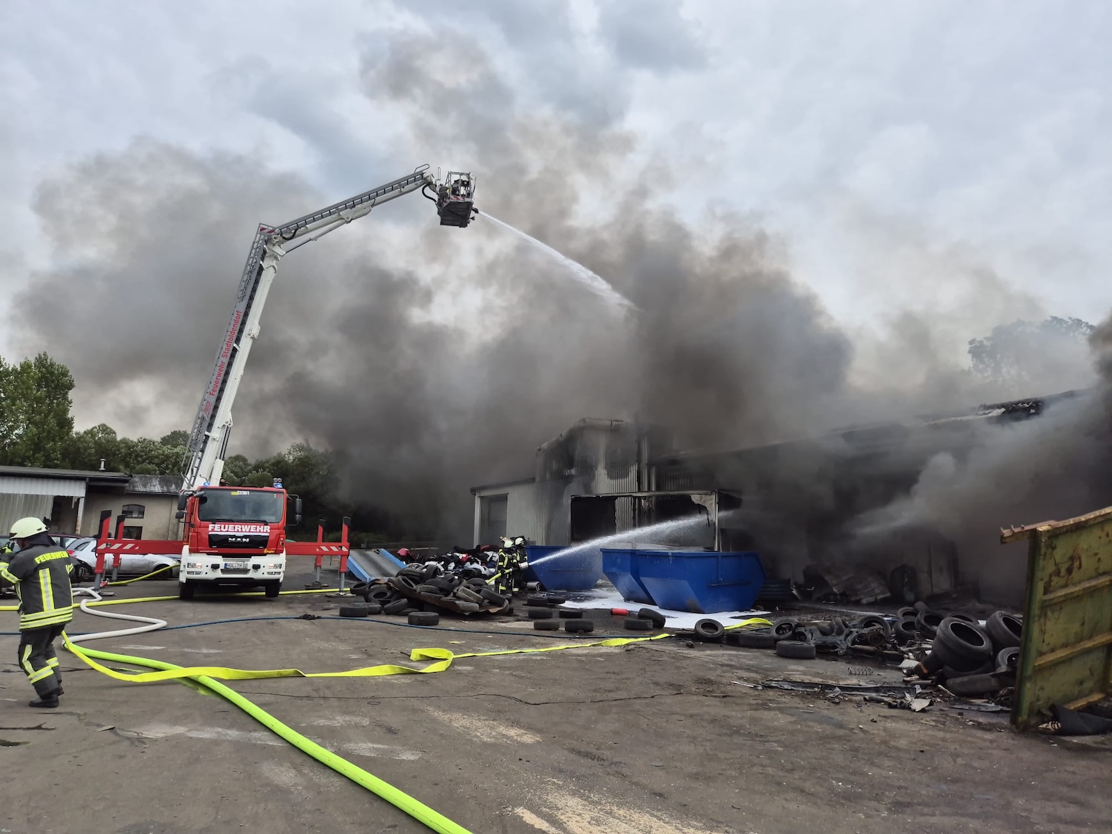 Eschershausen (lbr). An der Homburgstraße in Eschershausen ist es zu einem Brand in einer Lagerhalle gekommen. Der Brand führt zu einer starken Rauchniederschlagsbelastung in der Umgebung, was zu einer erheblichen Geruchsbelästigung führt.