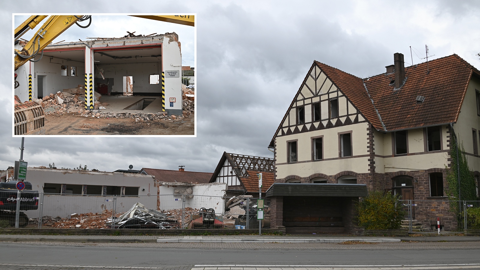 In nur zwei Tagen fiel zunächst der Dachstuhl des rund 60 Jahre alten Feuerwehrgerätehauses. Das Gebäude aus dem Jahr 1964 war mehrfach modernisiert worden – zuletzt 2005, als ein kleiner Anbau für die Spinde hinzukam. Auch das benachbarte ehemalige Schulgebäude wird in den kommenden Tagen abgerissen. Es wurde 1909 für zwei Schulklassen errichtet und 1941, nach Fertigstellung des Schulzentrums am Lambertweg, zu einem Wohngebäude umgebaut. In den vergangenen Jahrzehnten diente es unterschiedlichen Zwecken, zuletzt als Unterkunft für Geflüchtete.