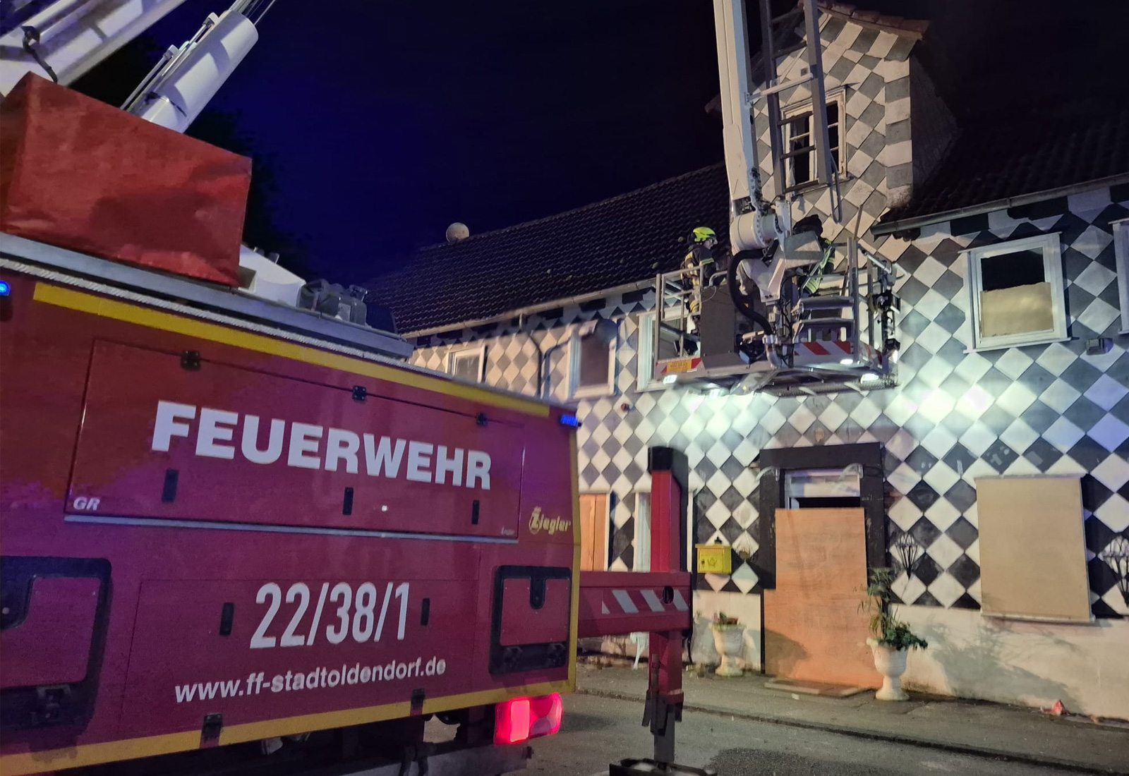 Kurz nach dem Knallereignis erfolgte dann auch die Alarmierung der Feuerwehr. Mehrere Fahrzeuge der Feuerwehr Stadtoldendorf, darunter auch die Drehleiter, trafen am Einsatzort ein. Die Einsatzkräfte kontrollierten unter anderem die Rückseite des Gebäudes und beleuchteten den Bereich zur weiteren Erkundung. Ein Feuer konnte die Feuerwehr zu keinem Zeitpunkt feststellen, jedoch bestätigte sich die von den Anwohnerinnen und Anwohnern gemeldete Rauchentwicklung. Zusätzlich waren der Rettungsdienst des Landkreises Holzminden sowie ein Streifenwagen der Polizei vor Ort.