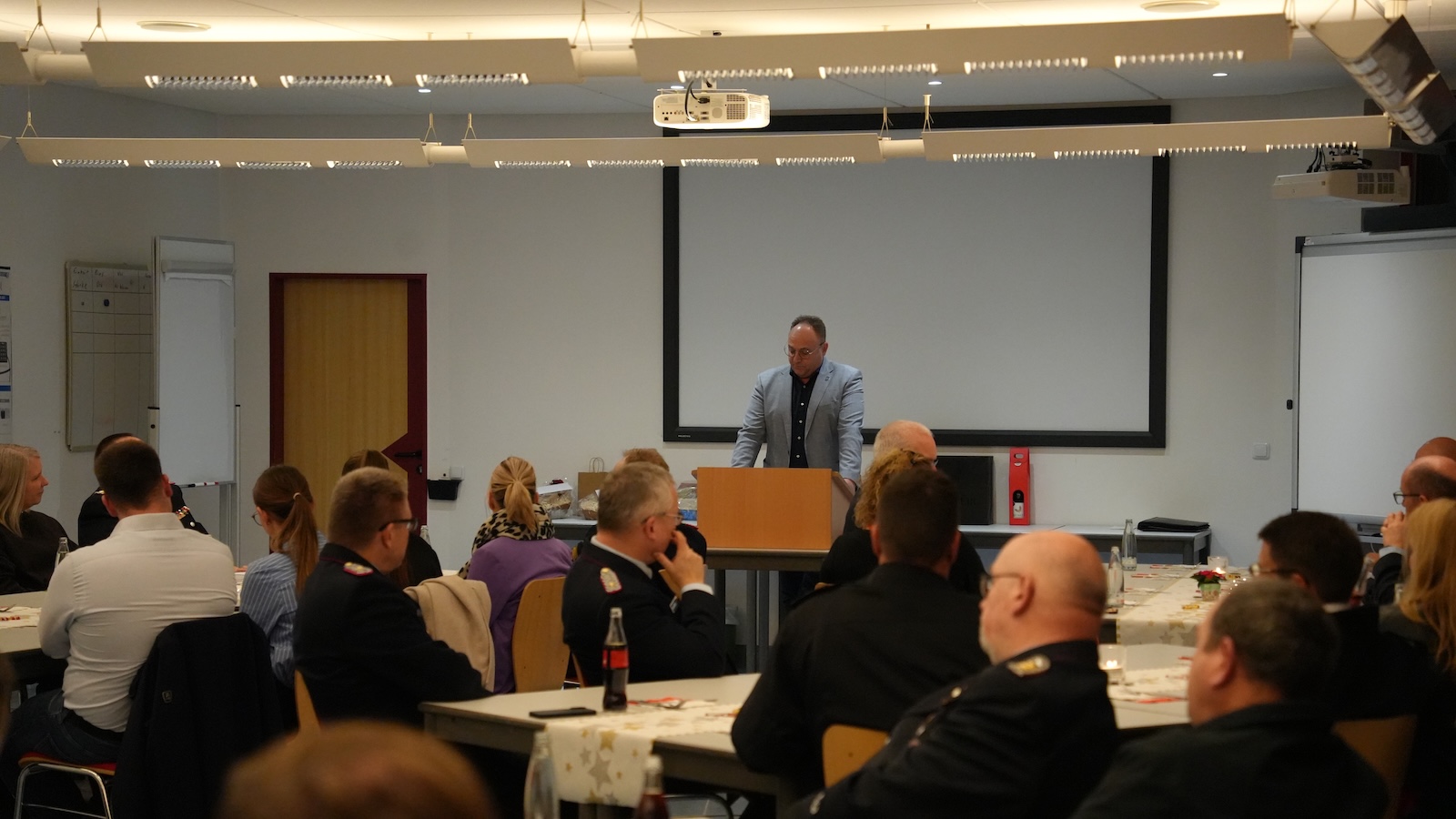 Zu Beginn richtete Landrat Michael Schünemann das Wort an die Anwesenden. Er dankte Jens Heinemeyer für dessen langjährigen Einsatz und begrüßte Michael Eisenbeis in seinem neuen Amt. Dabei hob der Landrat die besondere Verantwortung hervor, die mit dem Engagement in der Feuerwehr verbunden ist. Menschen, die sich jederzeit für das Leben anderer einsetzen, seien ein tragender Pfeiler der Gemeinschaft. Mit Blick auf Heinemeyer betonte Schünemann, dass dieser über viele Jahre hinweg Verantwortung übernommen und seine Kameradinnen und Kameraden sicher durch zahlreiche Krisensituationen geführt habe.