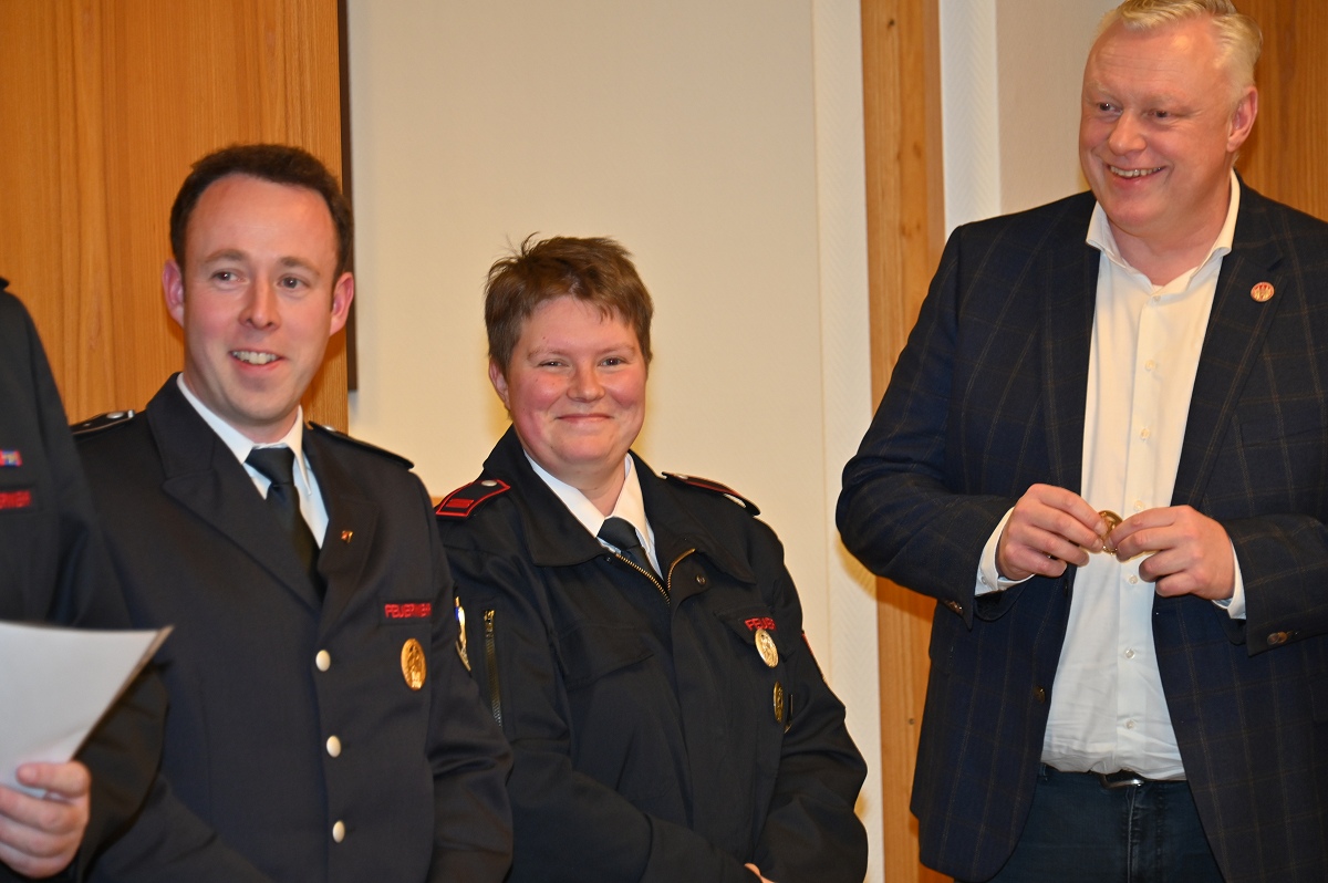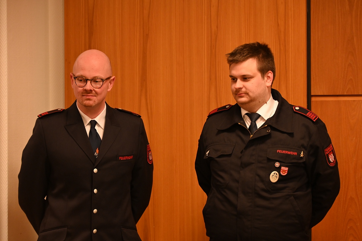 Auch Beförderungen standen auf der Tagesordnung. Zu Unterbrandmeistern wurden Anna Lena Becher, Benjamin Leiße und Noah Hesse befördert. Zum Oberfeuerwehrmann wurden Frederik Hamelmann und Carsten Olandt ernannt. Ingo Wittkowski und Leon Wresche erhielten die Ernennung zum Feuerwehrmann. Für die 30. erfolgreiche Teilnahme an Leistungswettkämpfen wurde Wolfgang Oppermann mit dem Leistungsabzeichen in Gold mit der Zahl 30 ausgezeichnet. Das silberne Leistungsabzeichen erhielt Anna Lena Becher.