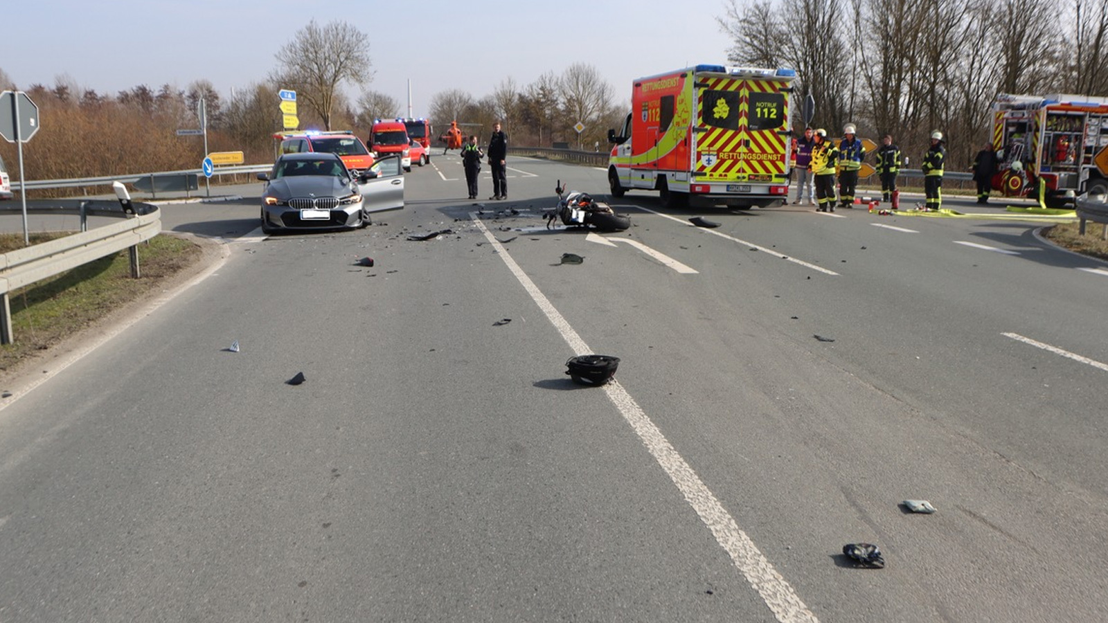 Nach Angaben der Polizei befuhr ein 43-jähriger Mann aus Willebadessen mit seinem Pkw die Kreisstraße 21 aus Richtung Großeneder in Fahrtrichtung Lütgeneder. Beim Überqueren der Bundesstraße übersah er offenbar ein vorfahrtsberechtigtes Motorrad, das aus Richtung Borgentreich in Richtung Warburg-Hohenwepel unterwegs war.