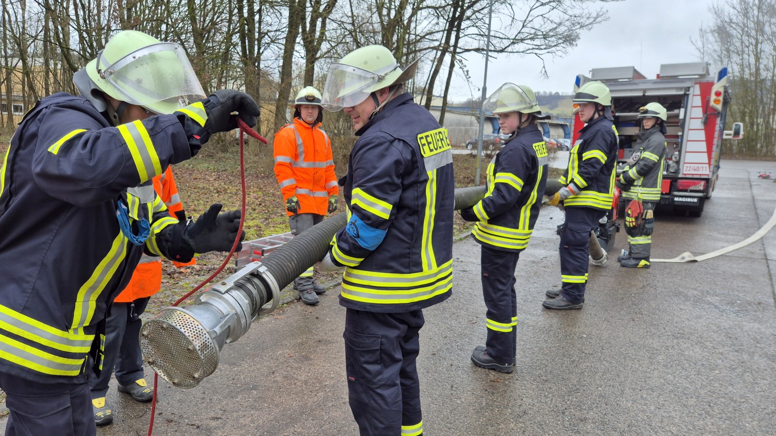 Der Lehrgang wurde unter der Leitung von Gemeindeausbildungsleiter Adrian Teiwes durchgeführt. Unterstützt wurde er durch den Kreisausbildungsleiter, den Gemeindebrandmeister sowie viele weitere erfahrene Ausbilder, die sowohl bei den theoretischen Unterrichtseinheiten als auch bei den praktischen Übungen und der abschließenden Prüfung vor Ort waren. Besonders hervorzuheben war das große Engagement der Teilnehmenden: Viele von ihnen sind Quereinsteiger und haben sich in den vergangenen Wochen intensiv auf ihre zukünftige Tätigkeit vorbereitet. Die Ausbildung fand an mehreren Tagen in der Woche sowie häufig auch freitags und samstags statt – alles auf ehrenamtlicher Basis. Umso erfreulicher war es, dass alle die Prüfung schließlich erfolgreich bestanden haben.