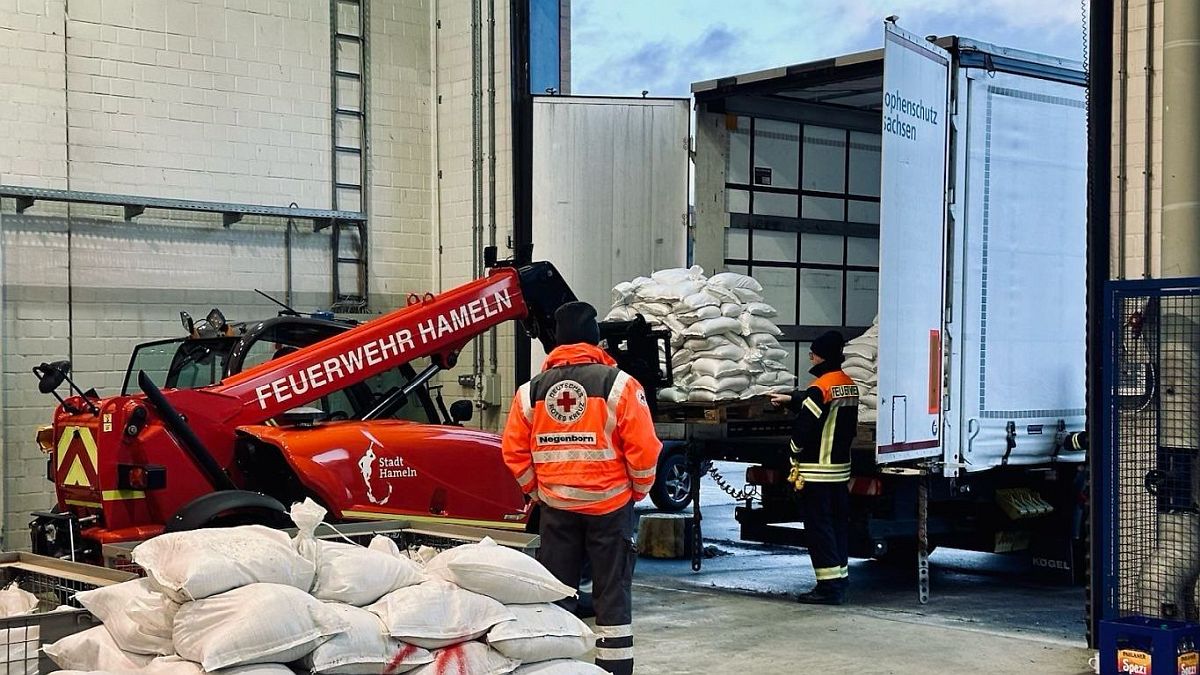 Gestern wurden 12.000 Sandsäcke aus dem Kontingent, das um Weihnachten 2023 von den Feuerwehren des Landkreises Hameln-Pyrmont gefüllt wurde, auf verschiedene Fahrzeuge verladen. Dies geschah in Zusammenarbeit mit der Kreisfeuerwehrbereitschaft KatS (GW-Dekon), dem THW, dem DRK, Sattelzugmaschinen des Landes Niedersachsen und zwei zivilen Sattelzugmaschinen. Die Feuerwehr Hameln steuerte einen Teleskoplader bei, um den Verladevorgang zu erleichtern.