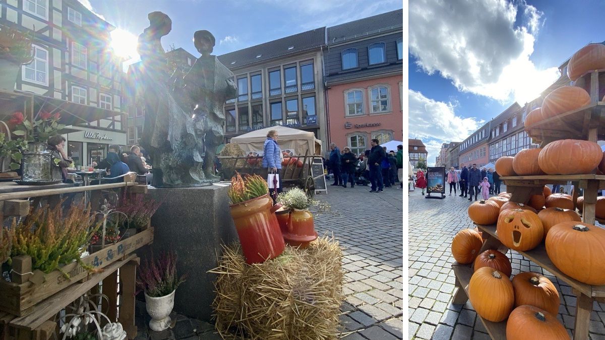 Die malerische Altstadt präsentiert sich im herbstlichen Gewand: Mehr als 100 Strohballen, Chrysanthemen, Kürbisse und weiteres saisonales Gemüse schmücken die Kulisse rund um das Hochzeitshaus und die Marktkirche. Über 50 Kunsthandwerker- und Marktstände laden zum Stöbern und Entdecken ein.