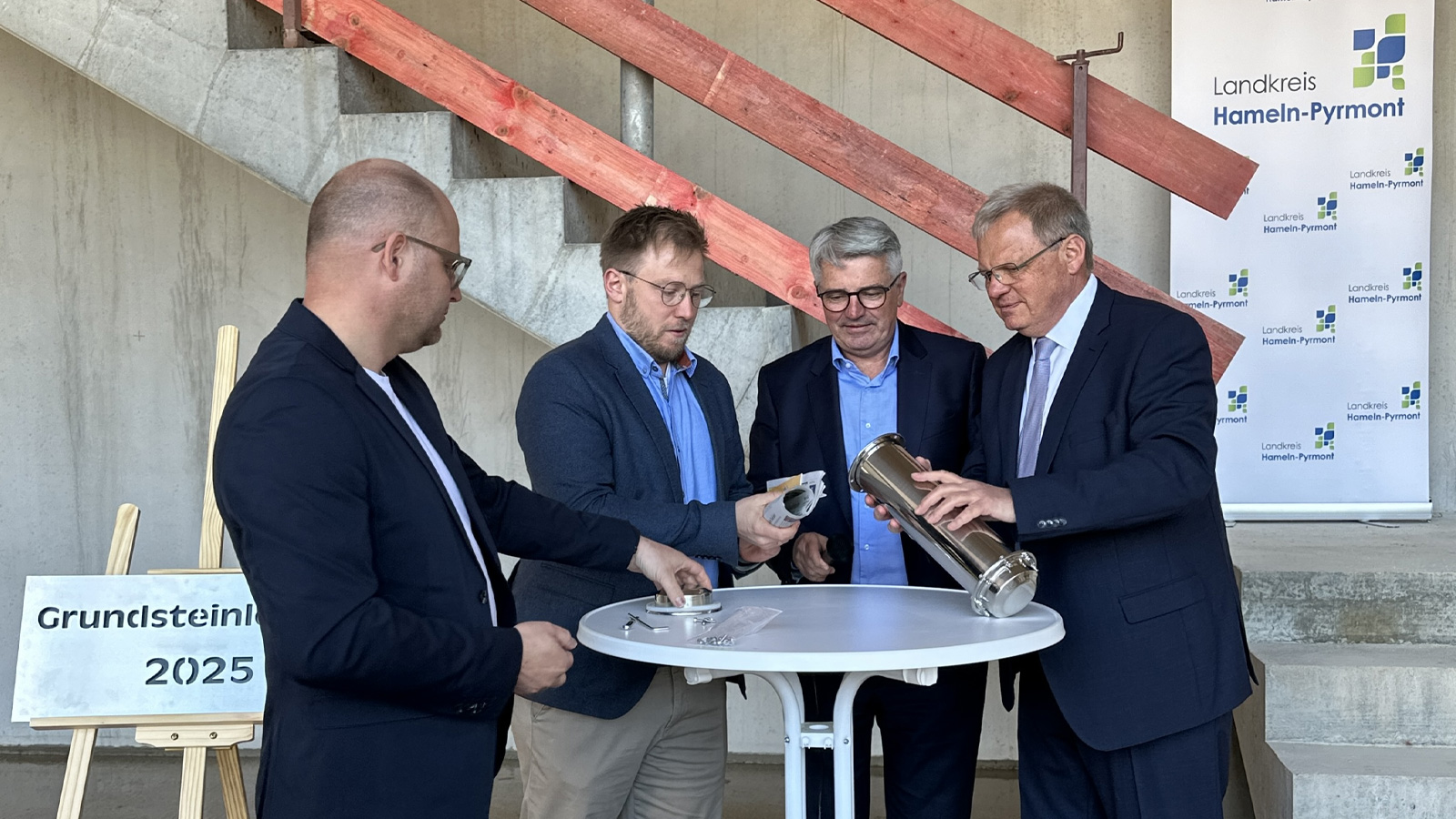 Emmerthal (red). Mit der Grundsteinlegung für das neue Schulzentrum in Emmerthal haben der Landkreis Hameln-Pyrmont und die Gemeinde Emmerthal am 21. April 2026 einen weiteren wichtigen Meilenstein bei einem der größten Bauprojekte des Landkreises gefeiert.